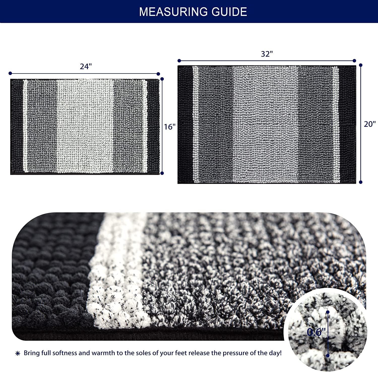 Subrtex Chenille Bathroom Rugs Non-Slip Absorbent Super Cozy Bathroom Mat Carpet (Black,16’x24′)