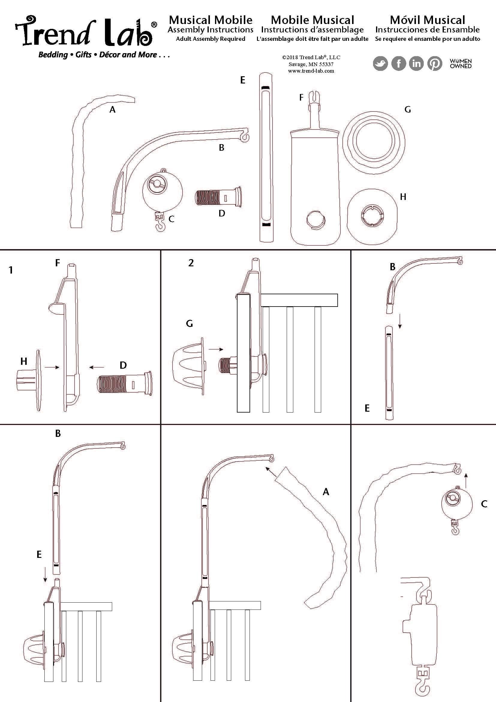 Encourage eye tracking and sound perception skills with this Koala Musical Crib Mobile by Trend Lab. A light gray and white leaf printed banded mobile ring features four adorable stuffed koalas suspended from decorative white ribbons that slowly rotate to Brahms’ Lullaby. Koala Musical Crib Mobile-Leaf Print Ring; Solid Trim/Slide Cover; Stuffed Plush Koalas; Black, Gray, White; Assembled Dimensions 15 in x 24 in x 10 in