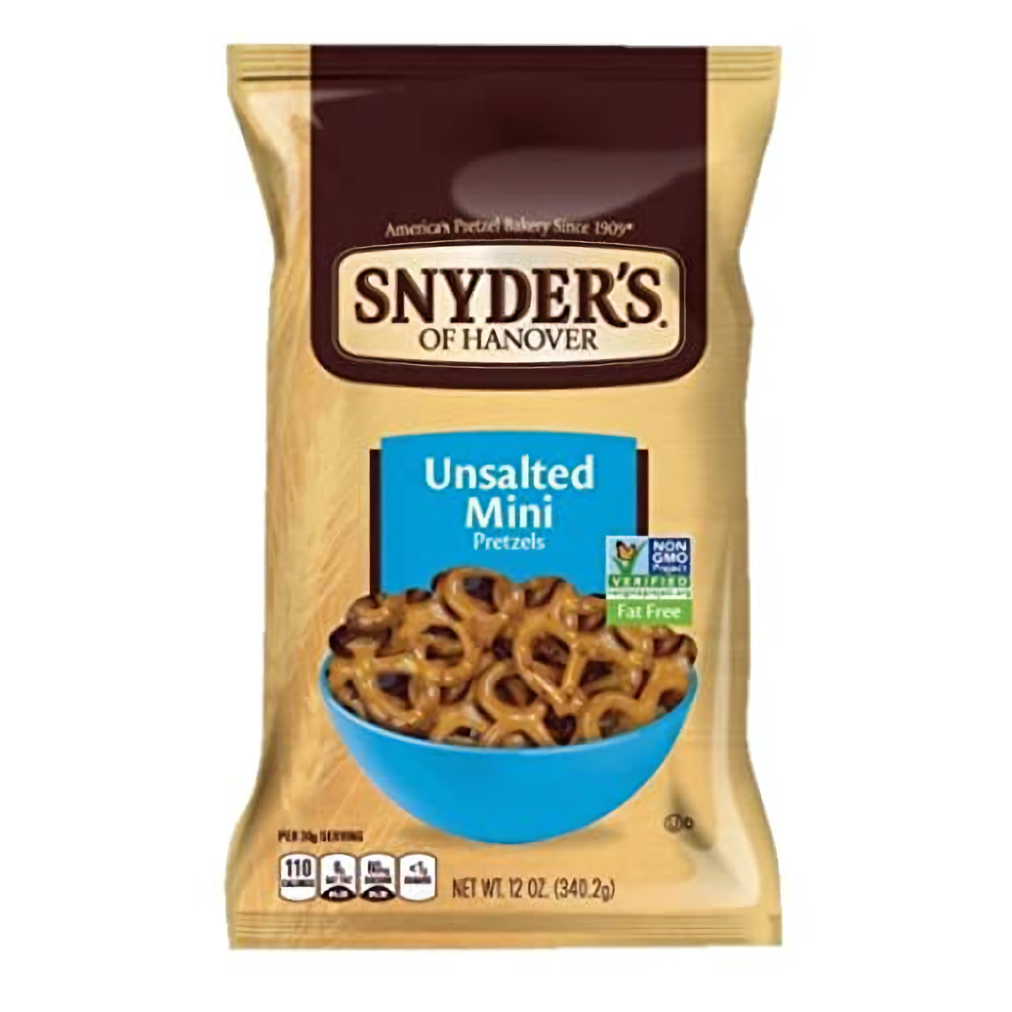 - 4 Bags of 12 Oz Snyder’s Of Hanover Unsalted Mini Pretzels
