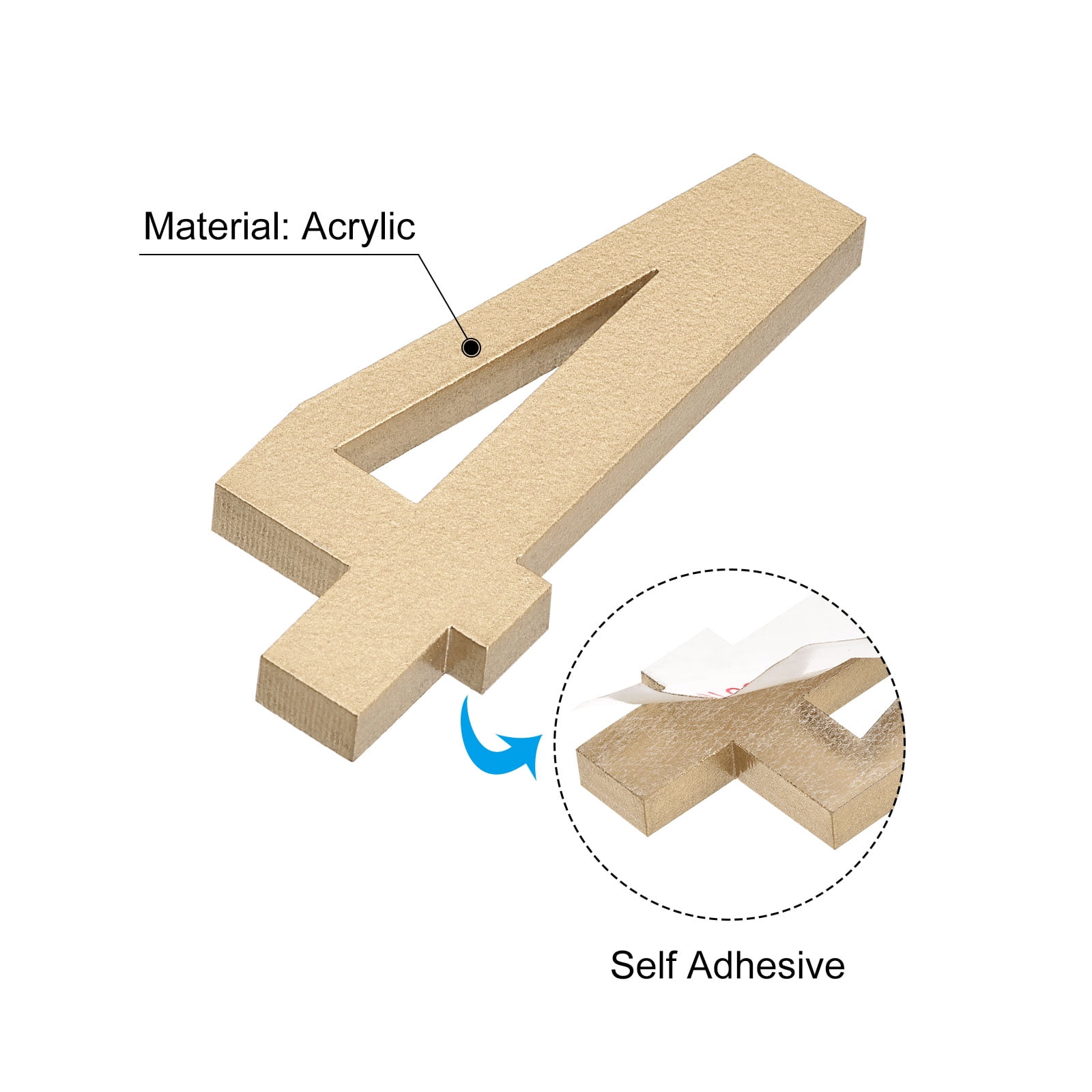 Uxcell 2.36 Inch 3D Self-Adhesive House Number for Hotel Mailbox Address, Gold No.4