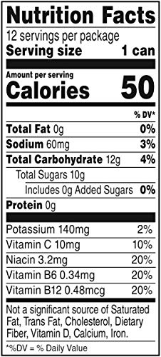 – healthy energy drink: each can has 1 combined serving of fruits and veggies from non-gmo sweet potatoes, apples, and carrots, just 50 calories, and is an excellent source of vitamin b