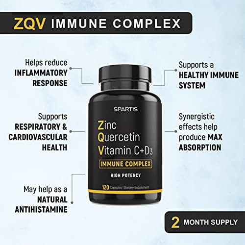 Zinc Picolinate Quercetin 500mg Vitamin C Vitamin D3 Bromelain Immune Support Anti inflammatory ZQV Immune ComplexZinc Quercetin 500mg with Vitamin C Vitamin D3 Bromelain Immune Support High Potency Anti Inflammatory Quercetin Zinc Supplement Immunity Booster ZQV Immune Complex (120-Ct)