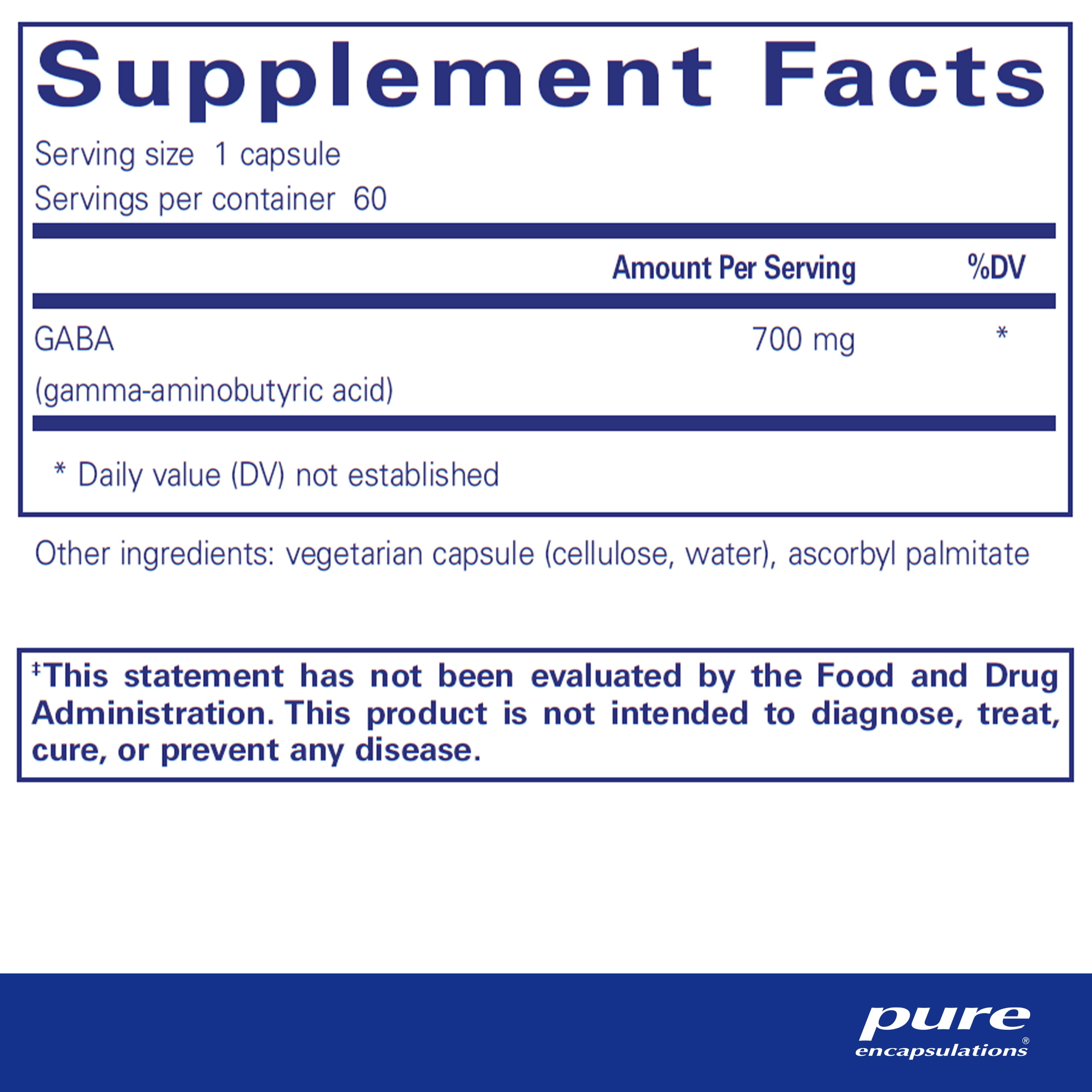 Pure Encapsulations GABA | Supplement to Support Relaxation and Moderation of Occasional Stress* | 60 Capsules