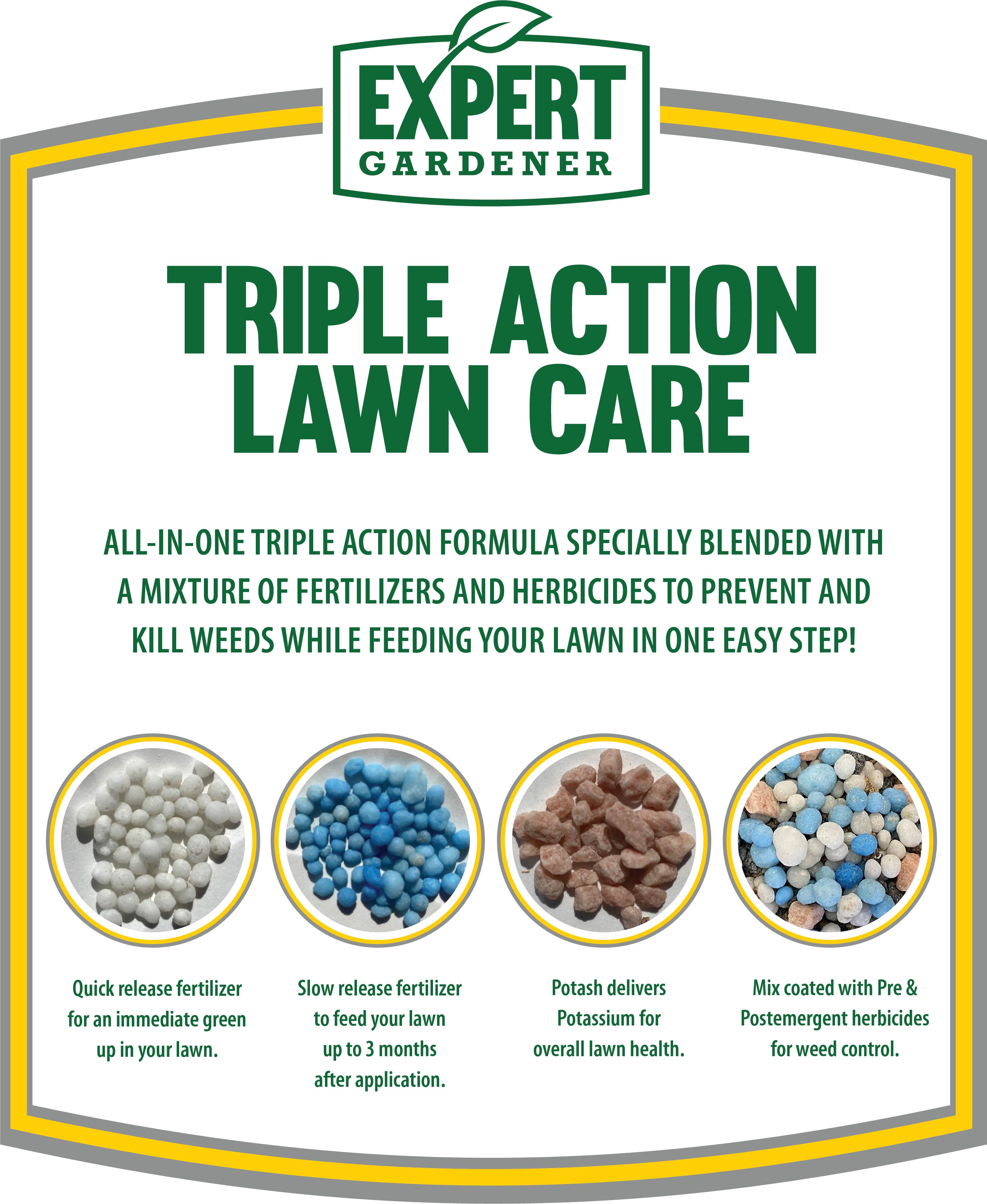 Expert Gardener Triple Action Lawn Food & Weed Control, 18-0-1 Fertilizer, 20lb Covers 8,300 sq. ft