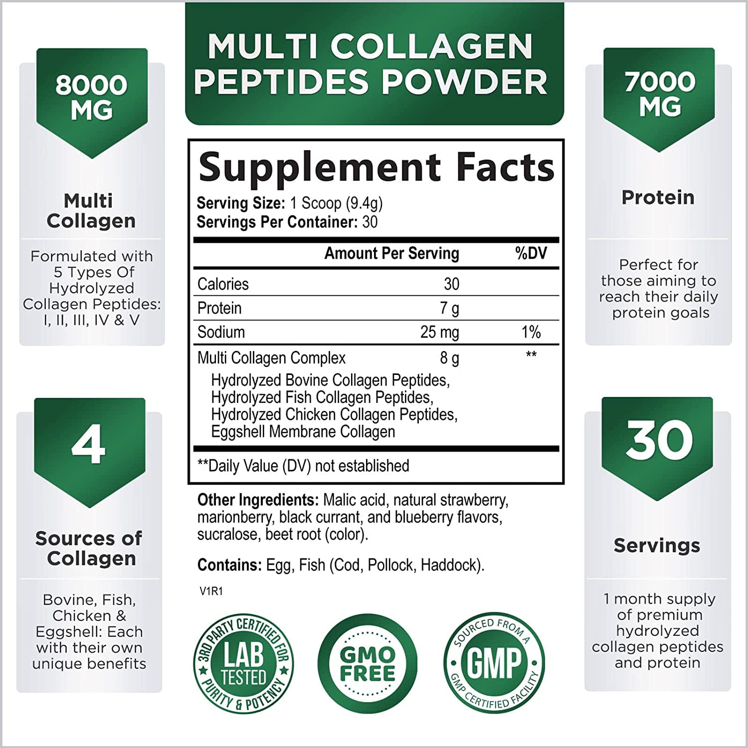 Nature’s Nutrition Collagen Powder – Hydrolyzed Collagen Peptides for Hair, Nails, Skin and Joints Support – High Absorption, Berry Flavor, Gluten Free – 30 Servings