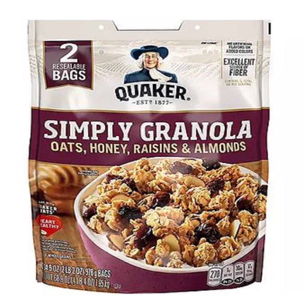 Quaker Simply Granola, Oats, Honey, Raisins & Almonds, 34.5 Oz Bag, 2 Bags/Pack
