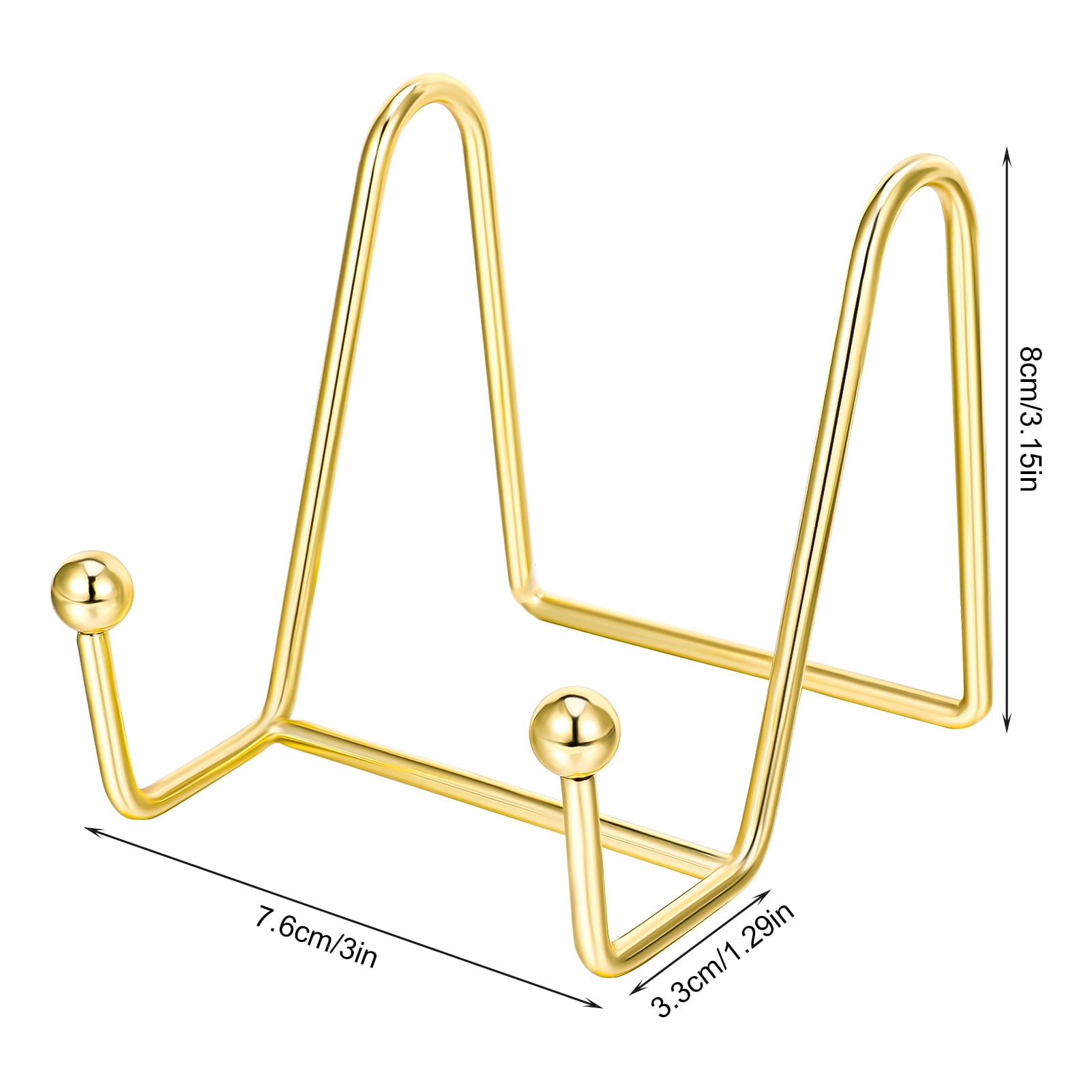 HEQUSIGNS 4Pcs Iron Display Stand, Gold Iron Stand Easel Plate Display Photo Holder, Frames Decorative Plates for Tablets and Art