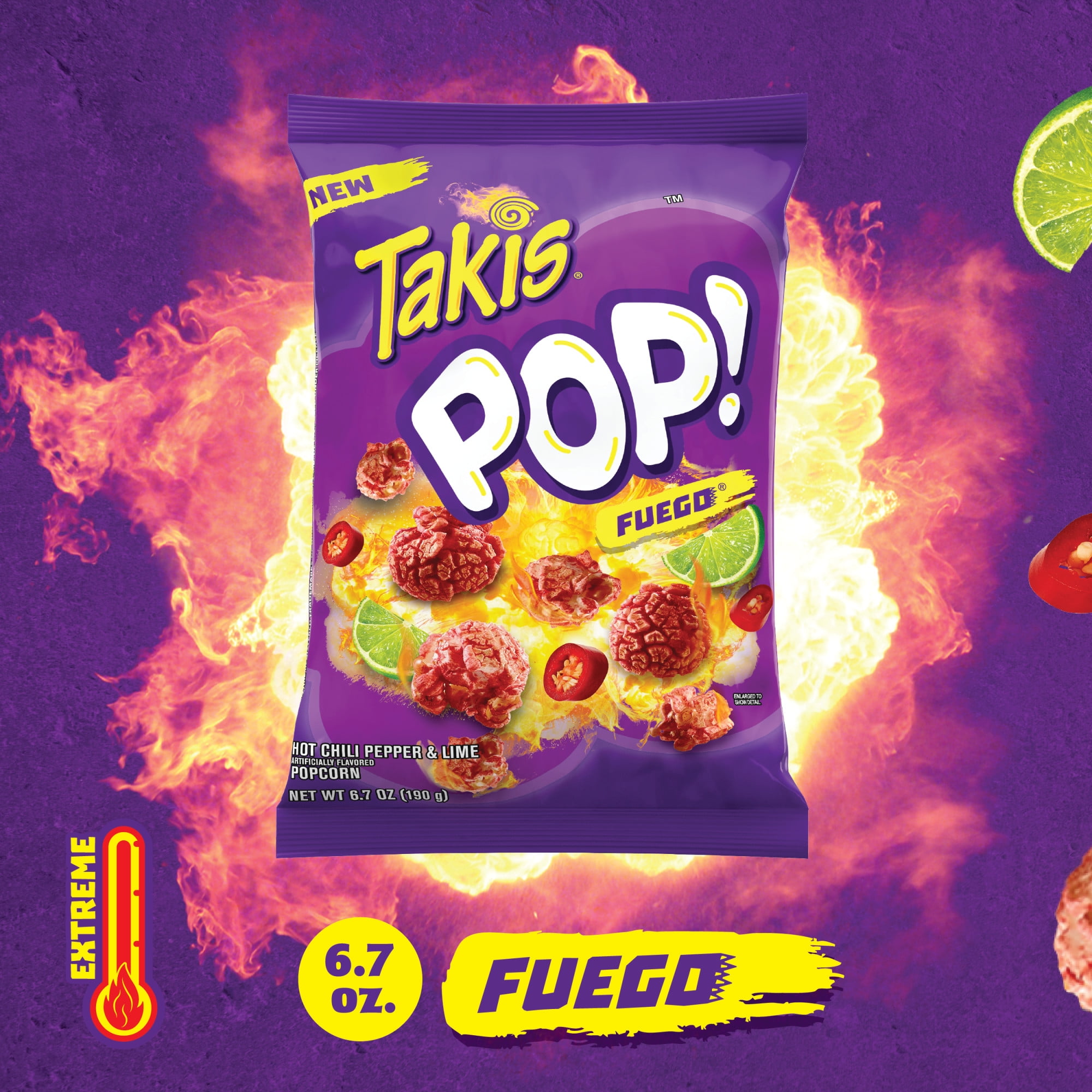 Takis Pop! Fuego Ready-To-Eat Popcorn, Hot Chili Pepper and Lime Artificially Flavored Popcorn, 6.7 Ounce Bag