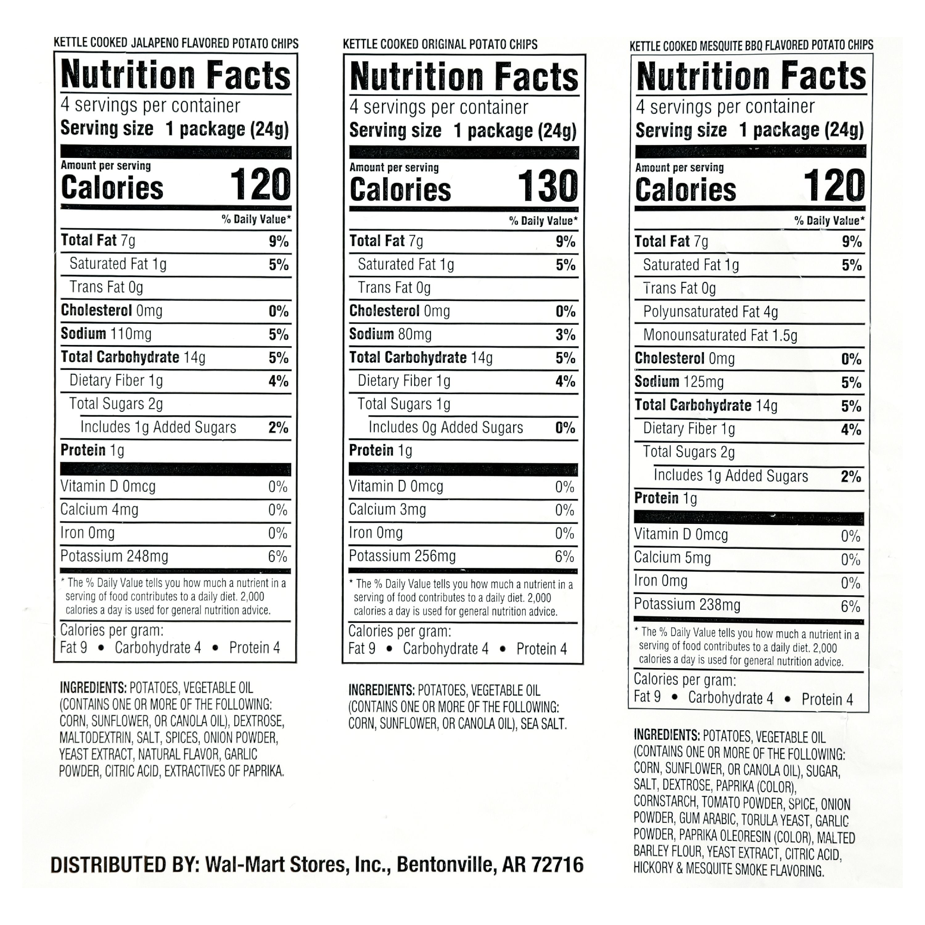 Great Value Kettle Cooked Potato Chips Variety Pack, 0.85 oz, 12 Count