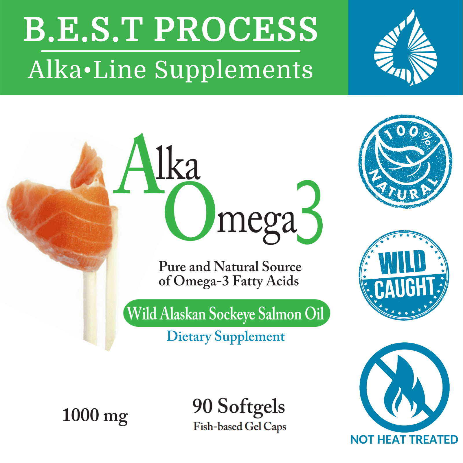 AlkaOmega3 — Morter HealthSystem Best Process Alkaline — Pure Wild Alaskan Sockeye Salmon Fish Oil Supplement — Omega 3s, Astaxanthin, Tocopherols, EPA and DHA — Supports Heart, Brain & Joint Health