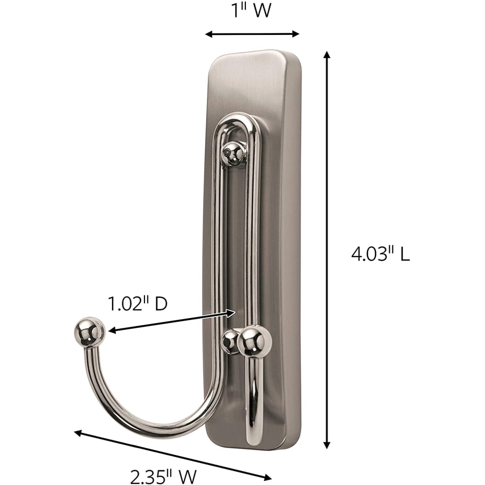 Command Bath Large Adhesive Double Hook Towel Satin Nickel, 2-Pack