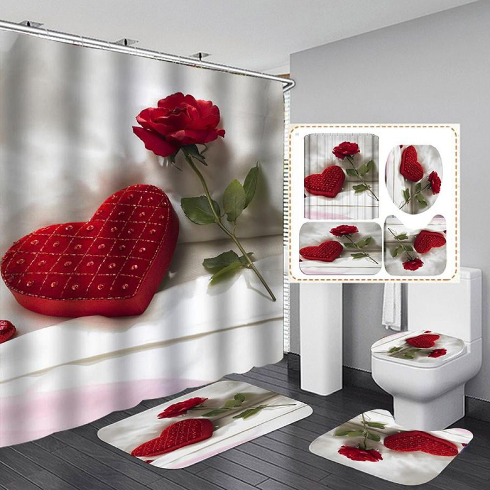 50% Off! New Valentine’s Day 3D Digital Printing Shower Curtain 4-piece Set For Home Hotel Party Decoration