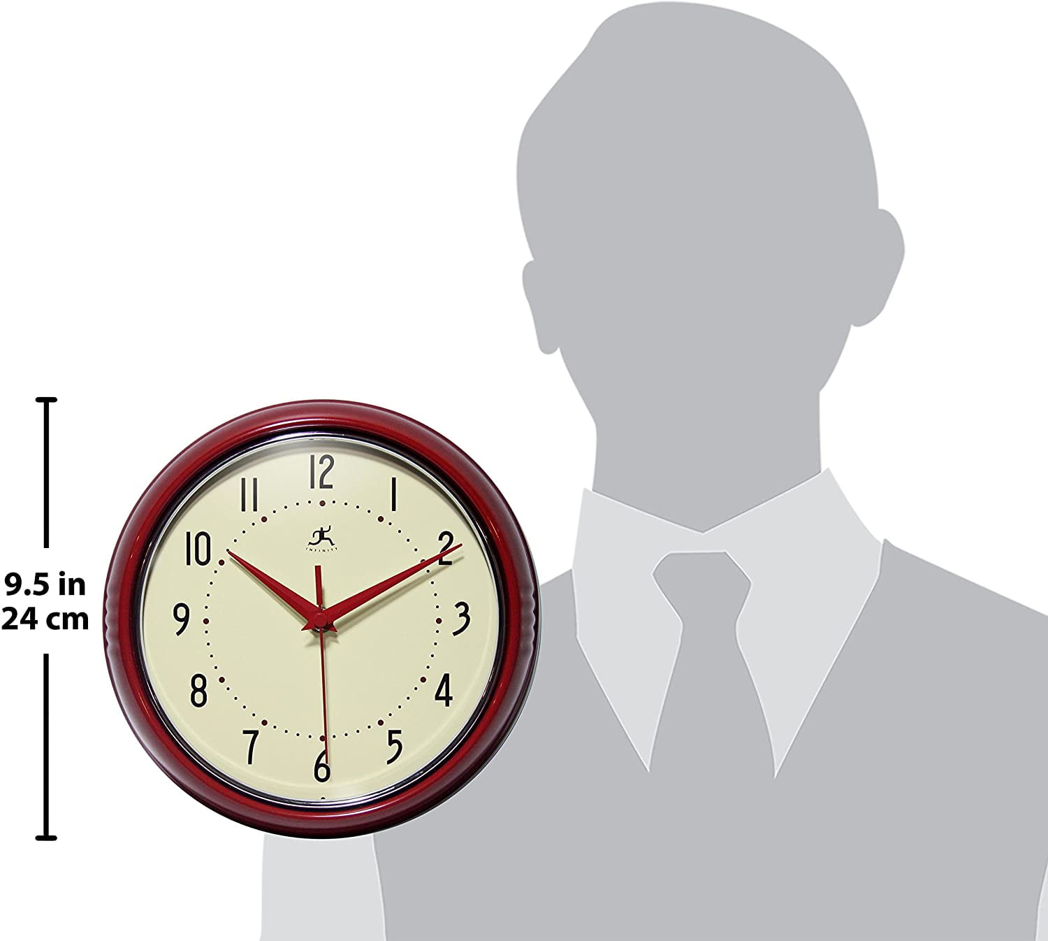 Infinity Instruments Round Silent Red Retro Indoor Wall Clock