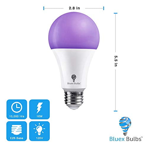 2 Pack A21 UV LED Black Light Bulb, 16W E26 UV Blacklight Bulb UVA Level 385-400nm, LED Ultra Violet LED, Body Paint, Glow in The Dark Party LED Light Bulb Neon Glow Fluorescent Poster by Bluex Bulbs