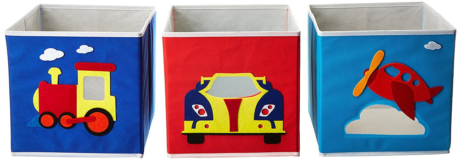 Kids Storage Organizer Bins Fabric Train Plane Car – Set of 3