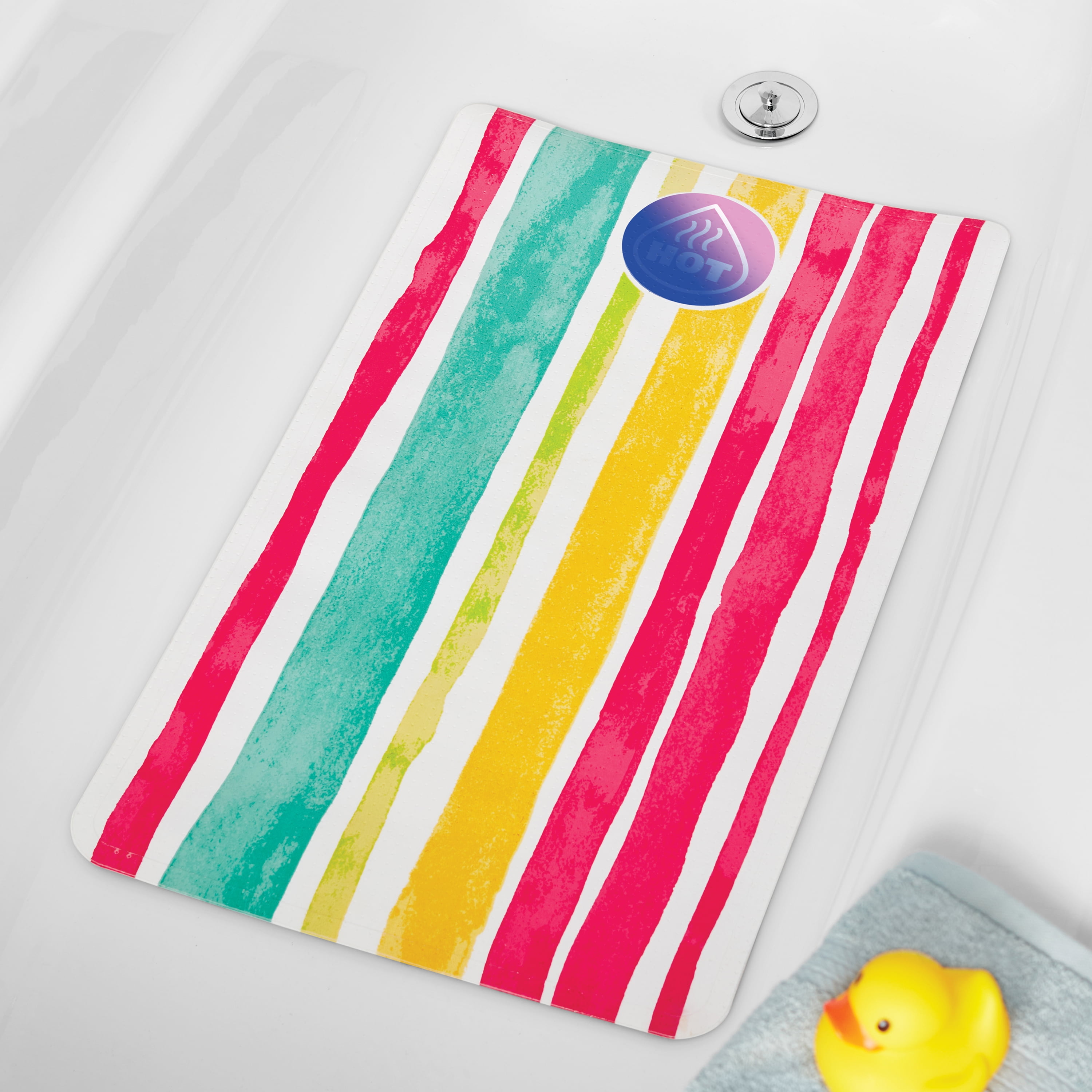 Your Zone Rainbow Pink Stripe Hot Spot Safety PVC Bath Tub Mat, 16’x27.5′