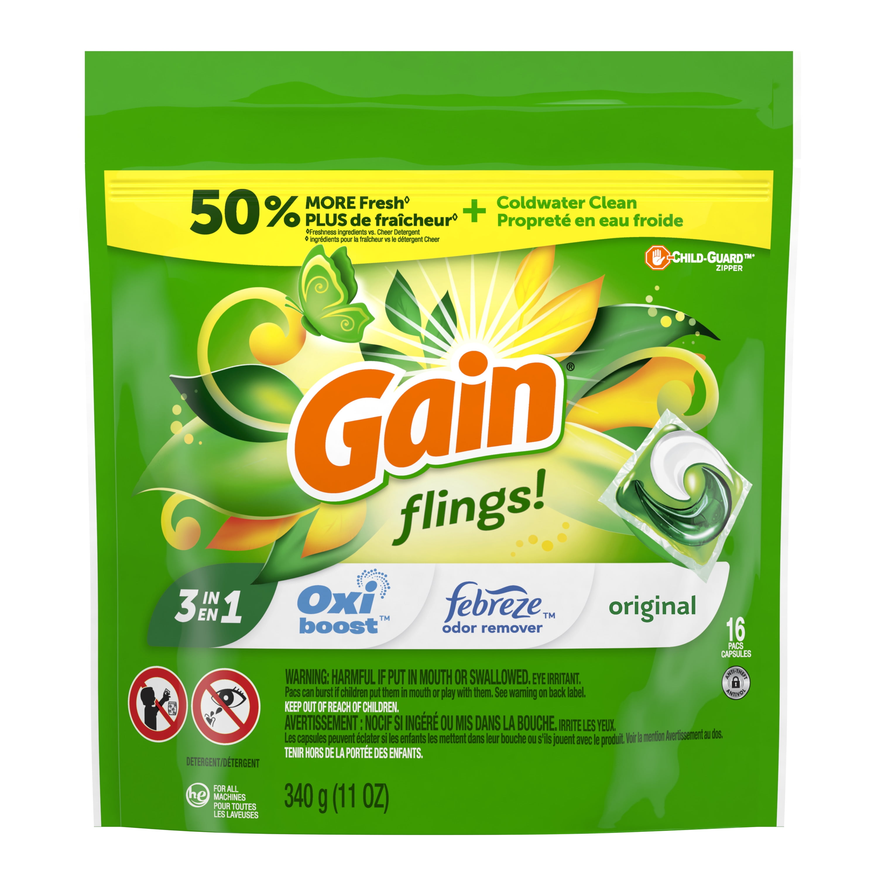 Gain Flings Laundry Detergent Soap Pacs, 16 Ct, Original Scent