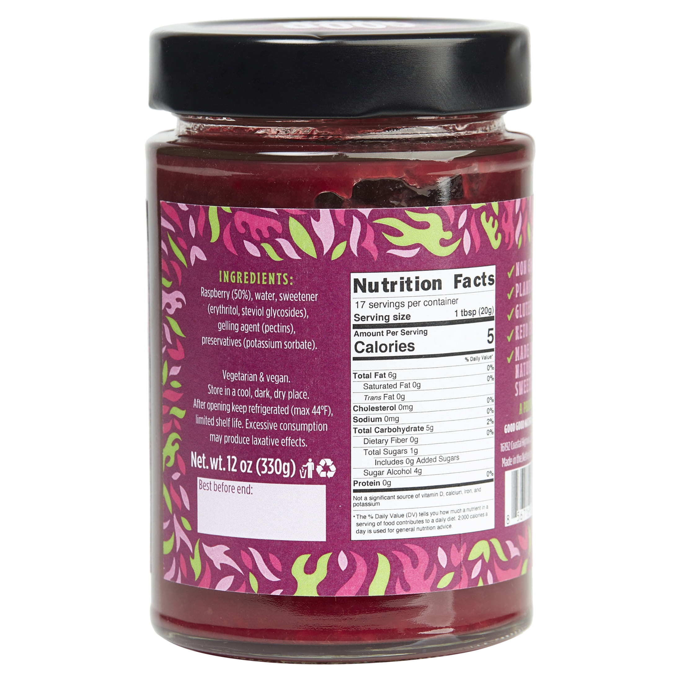 Good Good Keto-Friendly Sweet Raspberry Jam, 12 oz (2 Pack)