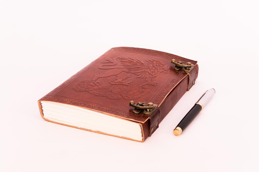 Handmade Dragon Embossed Leather Journal With Brass Lock