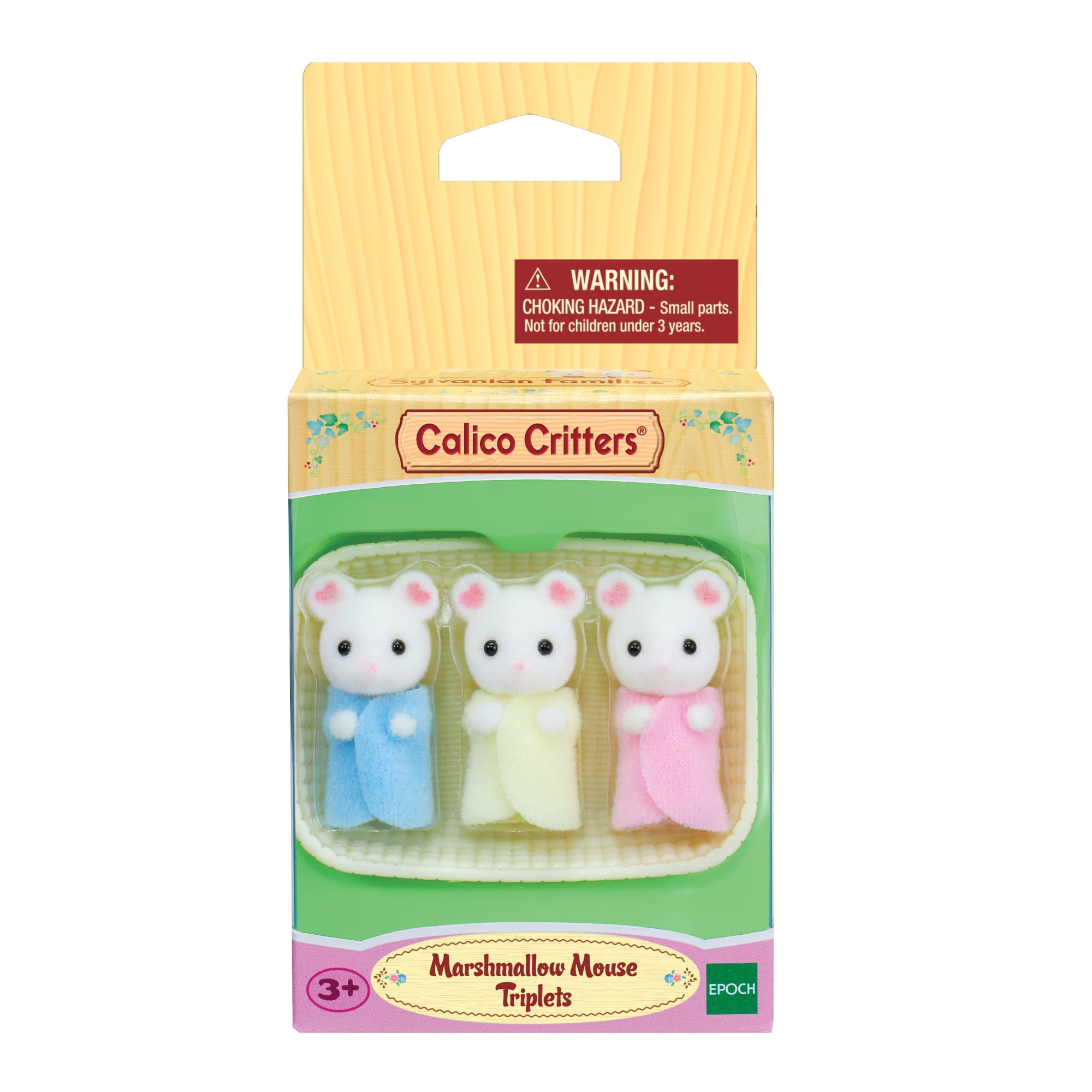 Calico Critters Marshmallow Mouse Triplets, Set of 3 Collectible Doll Figures with Cradle Accessory