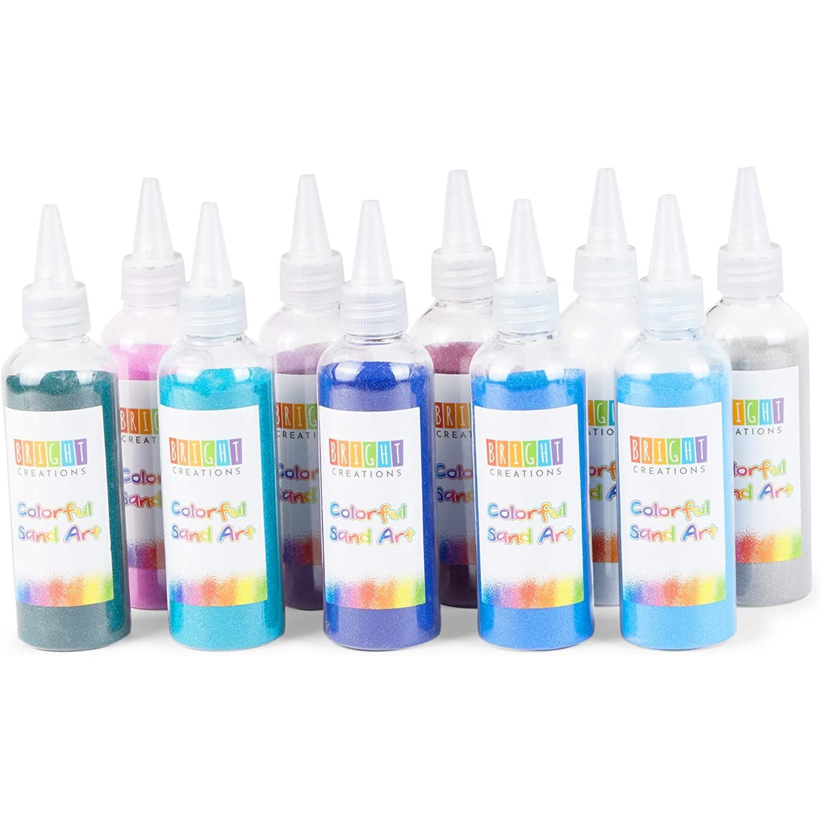 - 10 Cool Colors: Features 10 colors in each sand art set; lilac, lavender, orchid purple, indigo, cobalt blue, power blue, teal, aquamarine, white, and stone grey
