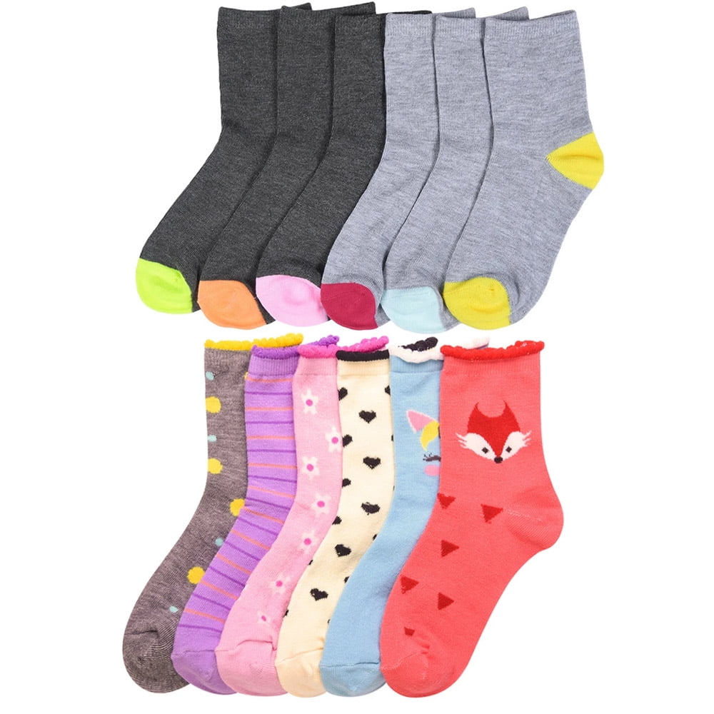 Women’s Socks / Assorted Colors / Size 9-11 Fit / Shoe Size 6-9 / 80% Cotton / 20% Spandex / Machine Wash Warm / Do Not Bleach / Tumble Dry Low