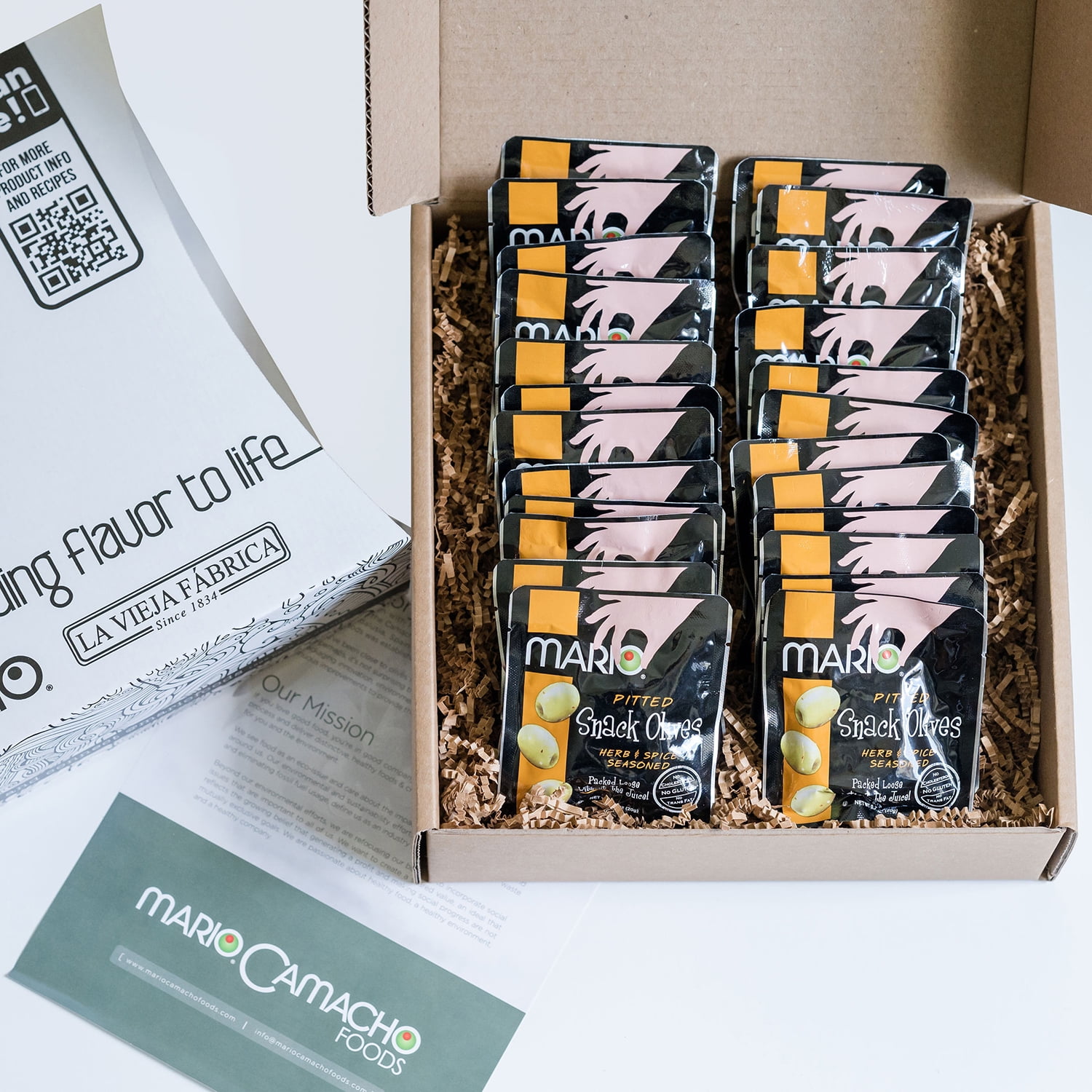 On-The-Go! Packed loose without the juice, these Mario 100-calorie, easy-to-open pouches are the perfect on-the-go snack without the mess. Our premium green olives are pitted and richly flavored with thyme seasoning and real garlic pieces. No brine means less mess, so you can pour them on a salad, use them as an ingredient, or eat them straight out of the pouch. However you choose to eat them, we are sure you’ll love the taste.