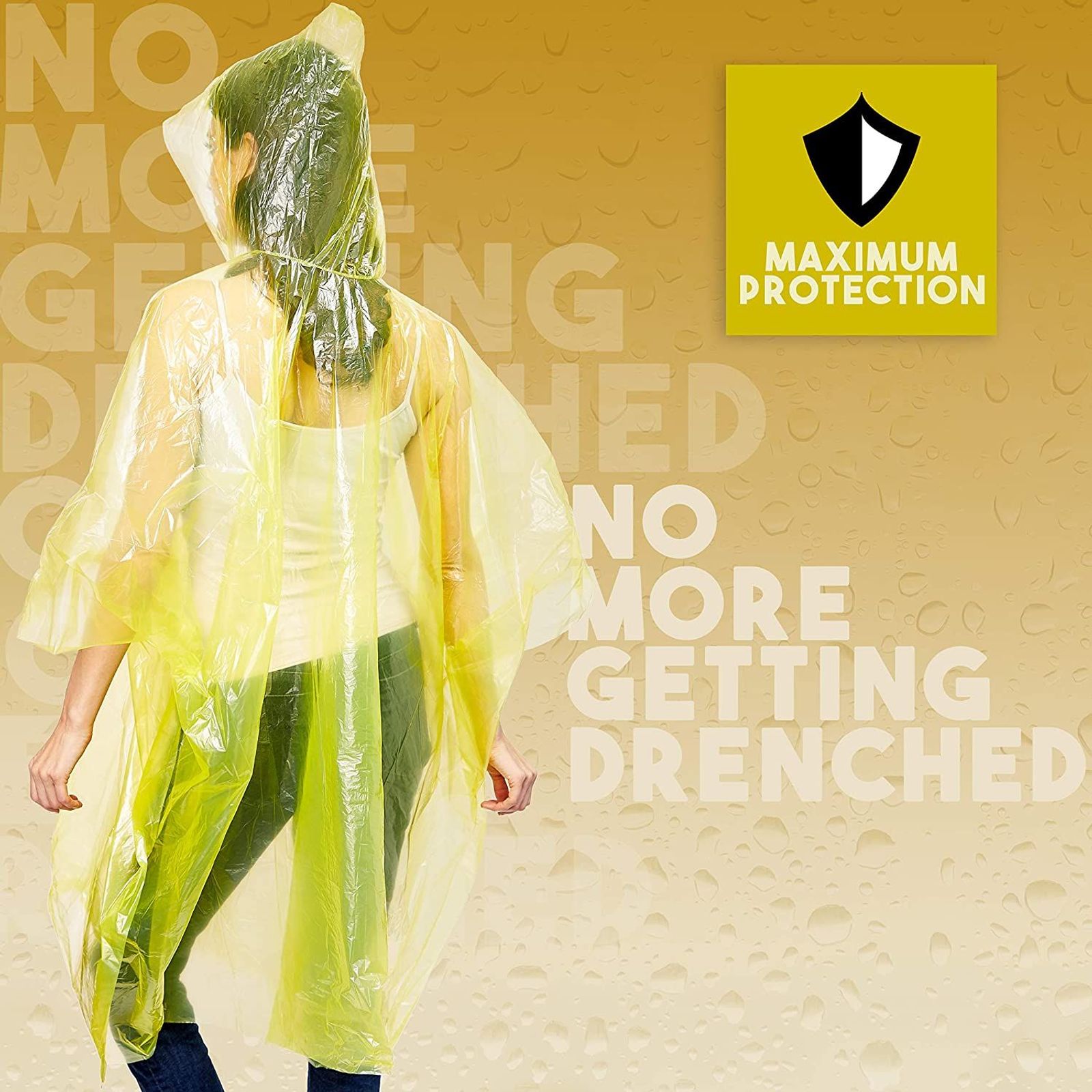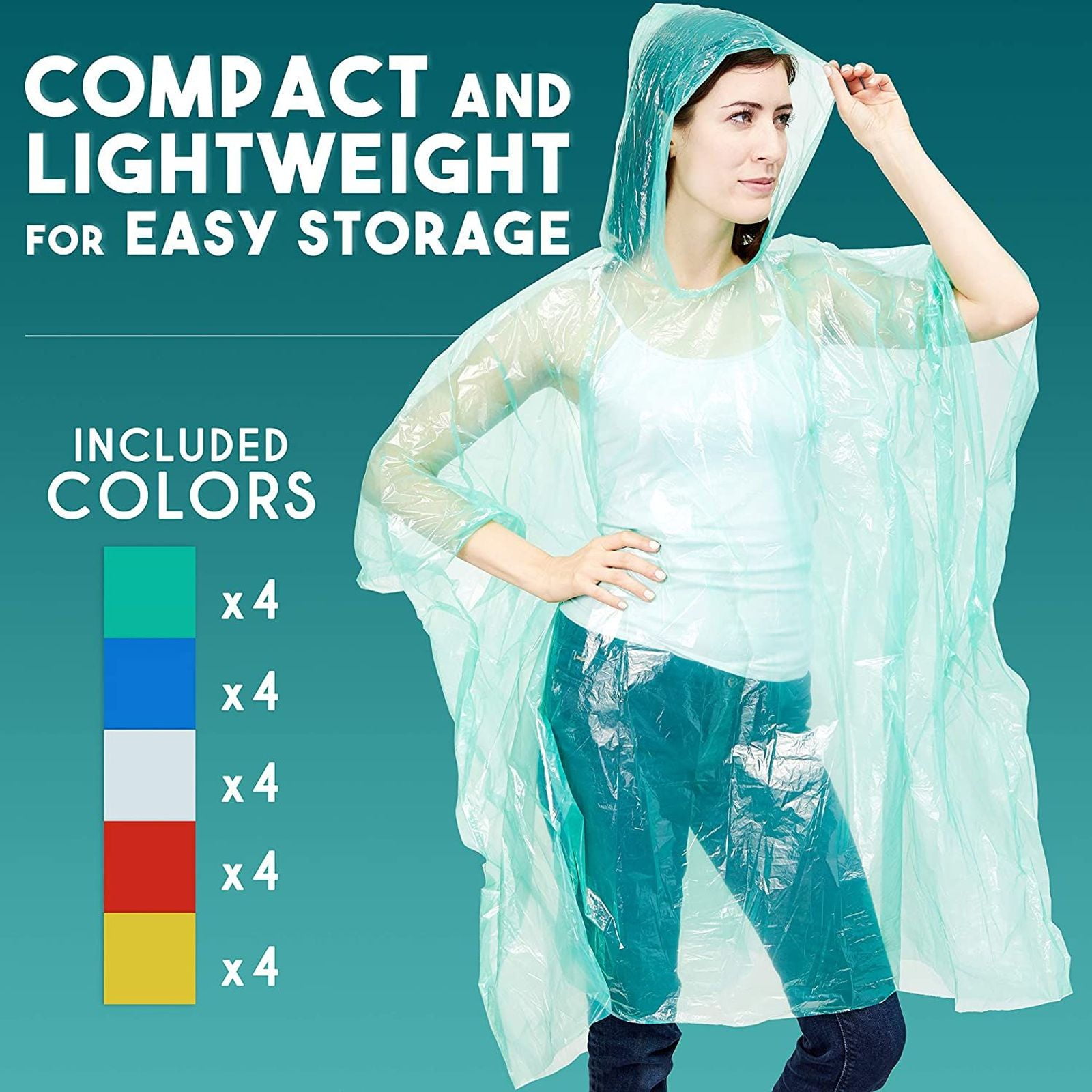 20 Pack Clear Ponchos with Hood for Adults, Individually Wrapped Disposable Raincoats, 5 Rainbow Colors