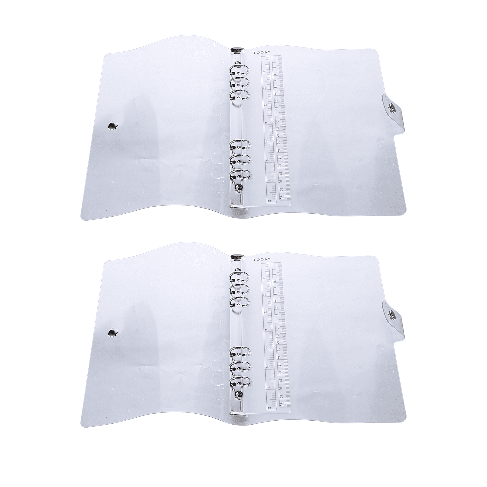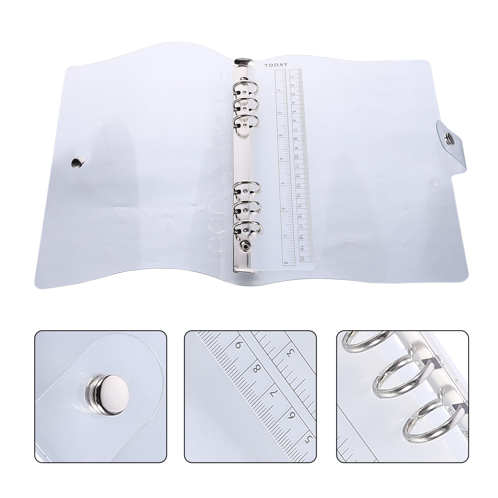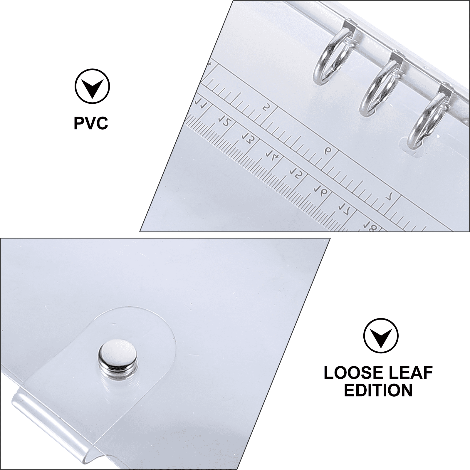 Transparent style loose-leaf and solid metal snap closures protect your daily necessities, such as travel diaries, planner, business notebooks, etc. The transparent and soft PVC cover makes it easy to check the inner pages.