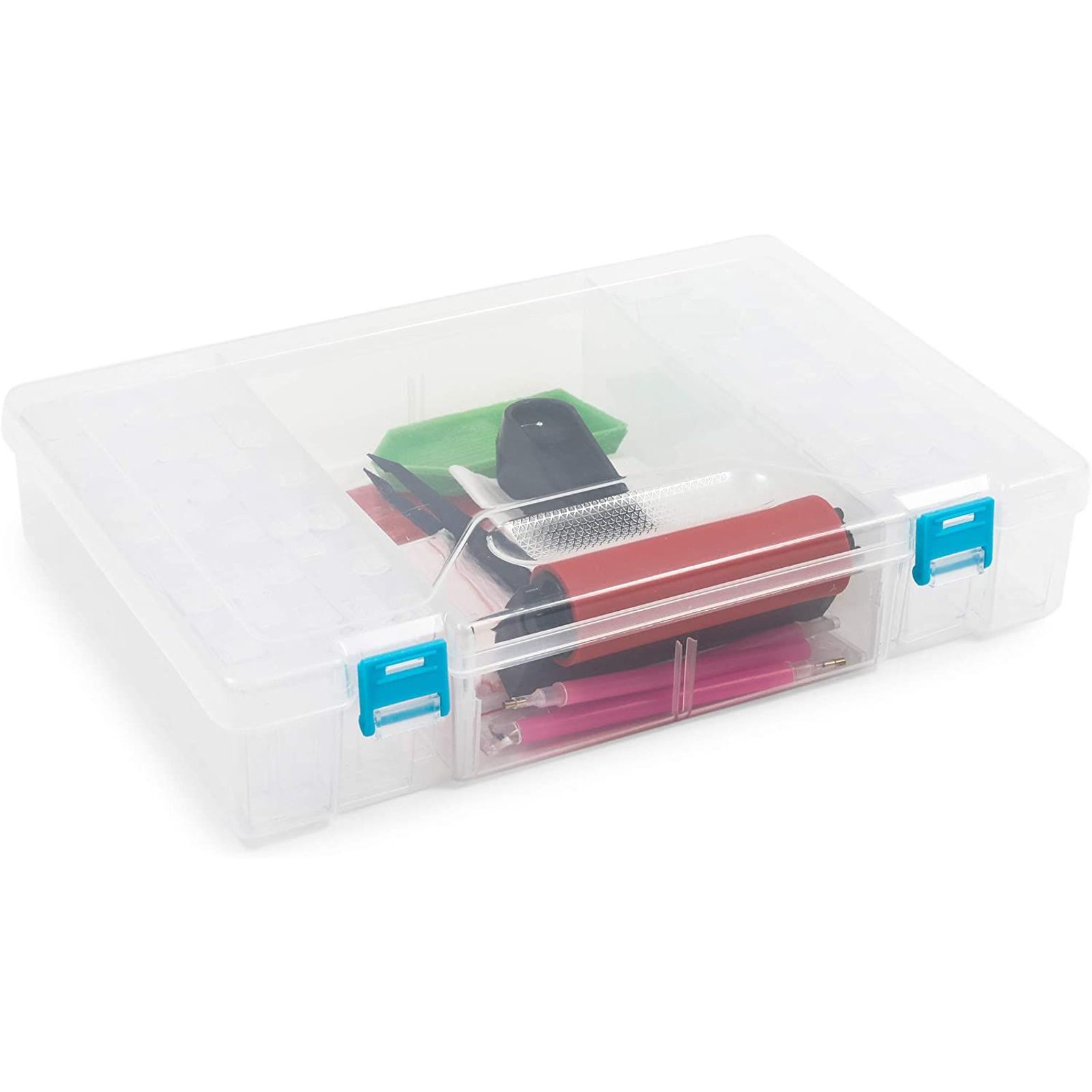 - TAKE ON THE GO: The diamond painting case features a handle and locks for convenient on-the-go travel; easily transport and curry your collection while keeping your items secure
