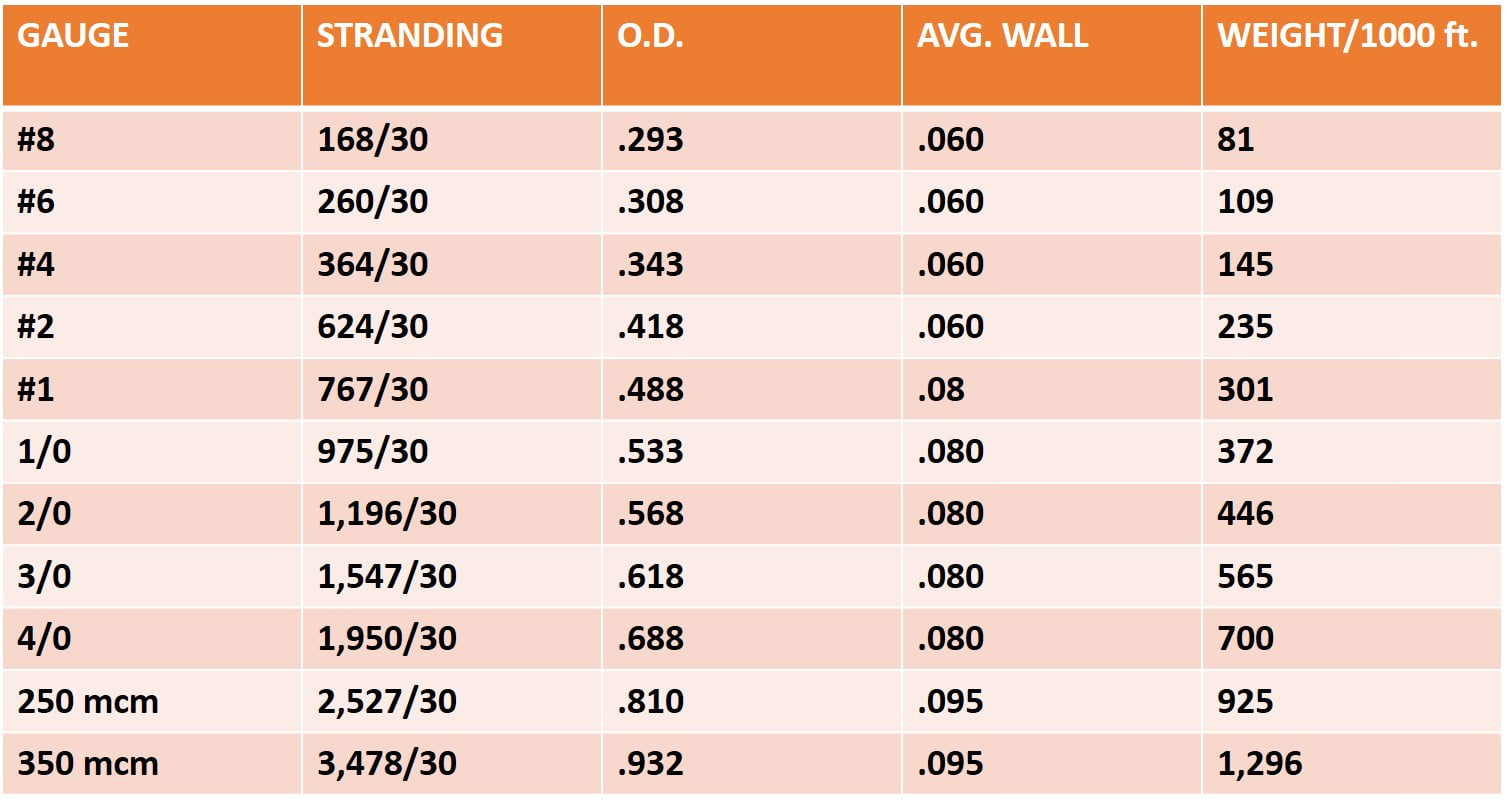 - Meets SAE J1127 – RoHS Compliant – VW-1 Flame test as per UL2556 – Suitable for battery cable per UL558 & UL583 – National Electrical Code article 630 electric welders