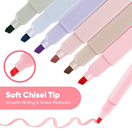 Aesthetic Cute Highlighters Assorted Colors, Bible Highlighters and Pens No Bleed, Mild Soft Chisel Tip Pastel Highlighters Marker Pens for Journaling Note Taking School Stationary Supplies (Happy)