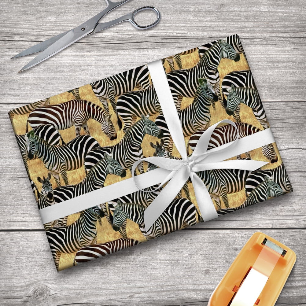 African Plains Zebra Herd Grazing Pattern Premium Roll Gift Wrap Wrapping Paper