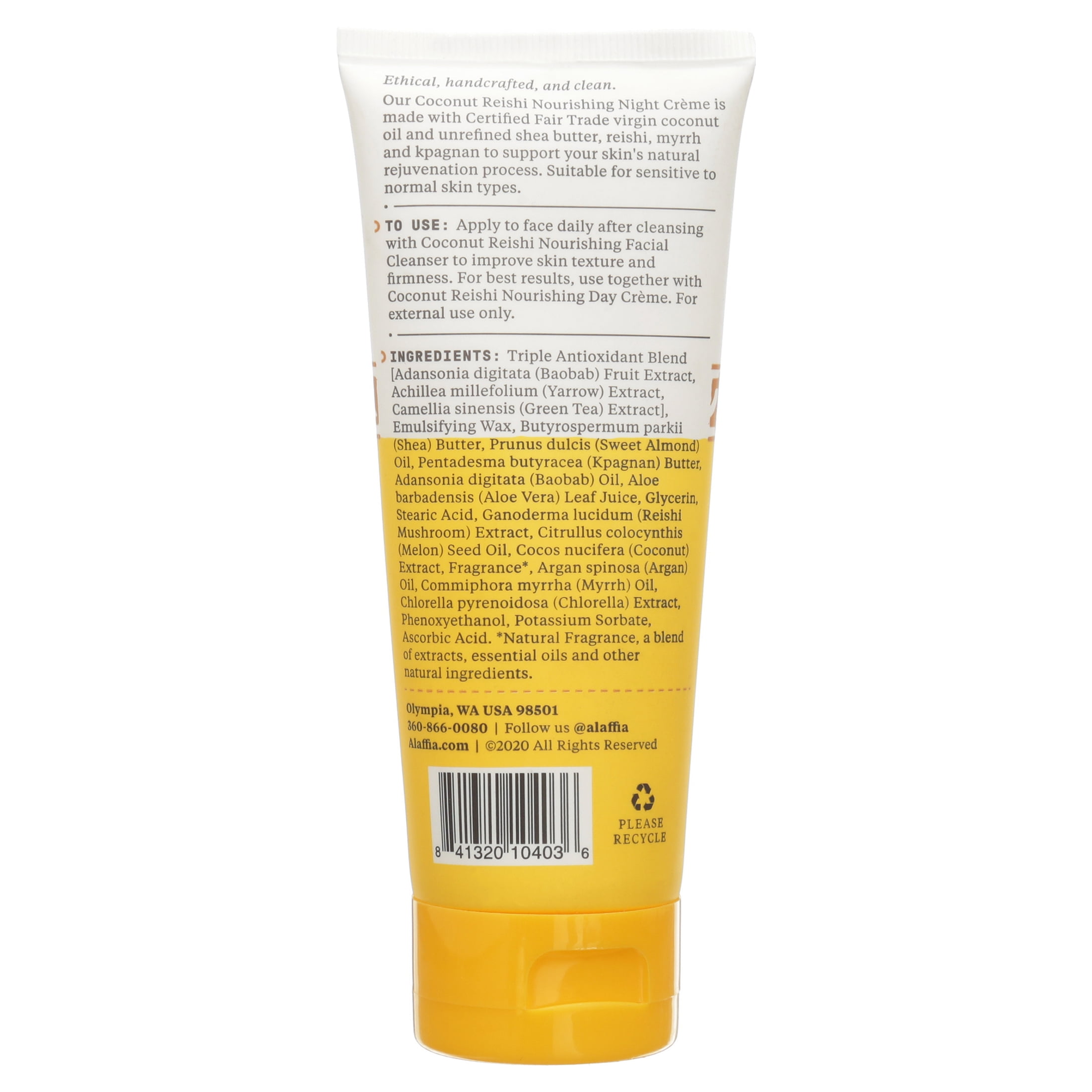 Alaffia Coconut Reishi Nourishing Night Crème, Purely Coconut, 3 fl oz. Alaffia coconut reishi nourishing night crème is made with certified fiar trade virgin coconut oil and unrefined shea butter, reishi, myrrh and kpagnan to support your skin’s natural rejuvenation process. Suitable for sensitive to normal skin types. Alaffia success is not simply measured by profit. Our success is measured by empowerment. Empowerment Projects are Alaffia mission in action, funded by the sales of Alaffia products. Alaffia invests in our communities because it is our moral responsibility and to ensure African resources empower African communities. The goal is to alleviate poverty and encourage gender equality. Our Empowerment Projects include several Education-Based Projects, Maternal Health, FGM Eradication, Eyeglasses and Environmental Sustainability. All of Alaffia projects empower Togolese communities to provide their skills and knowledge to the rest of the world and rise out of poverty.