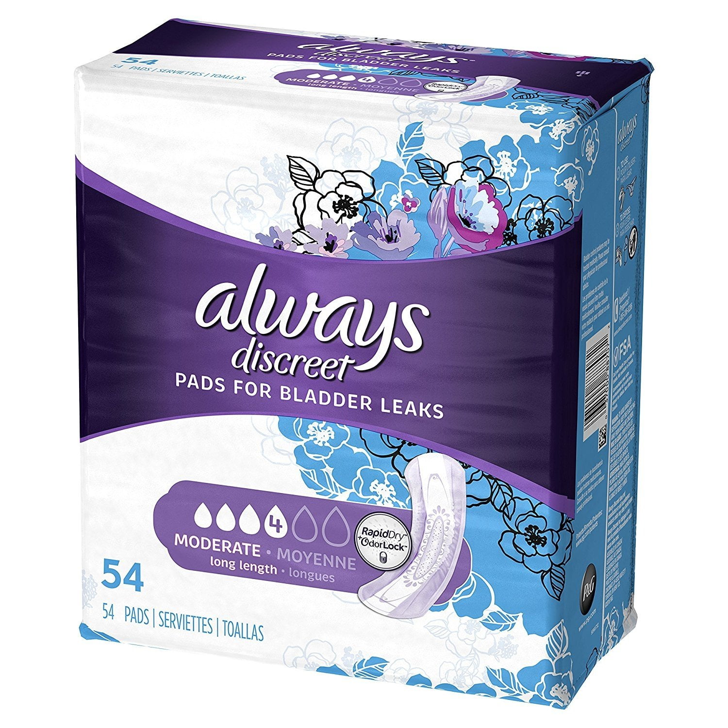 - Always Discreet pads – absorb 4X more than period sanitary pads of similar size