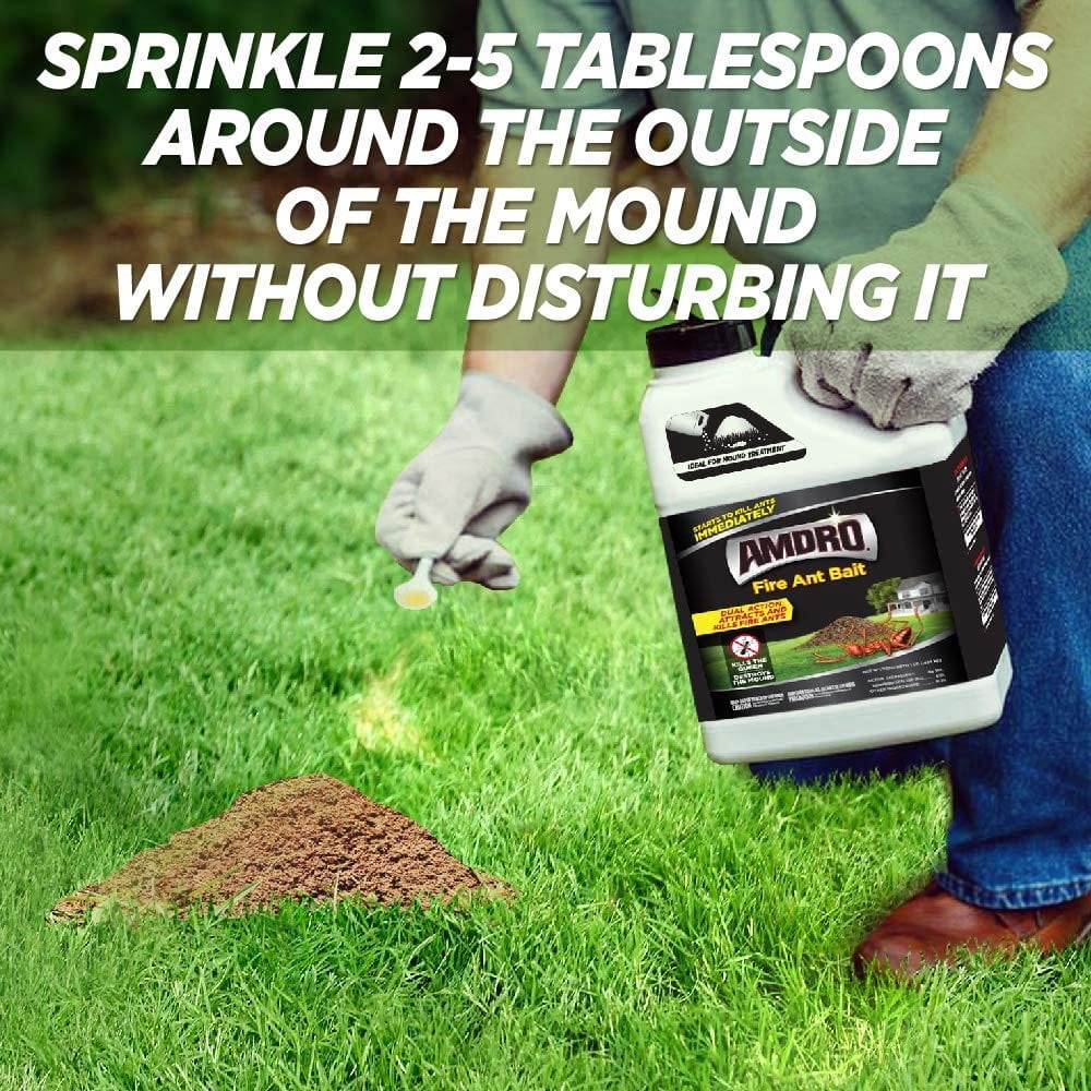 - Sprinkle 2-5 level tablespoons of fire ant bait around the mound