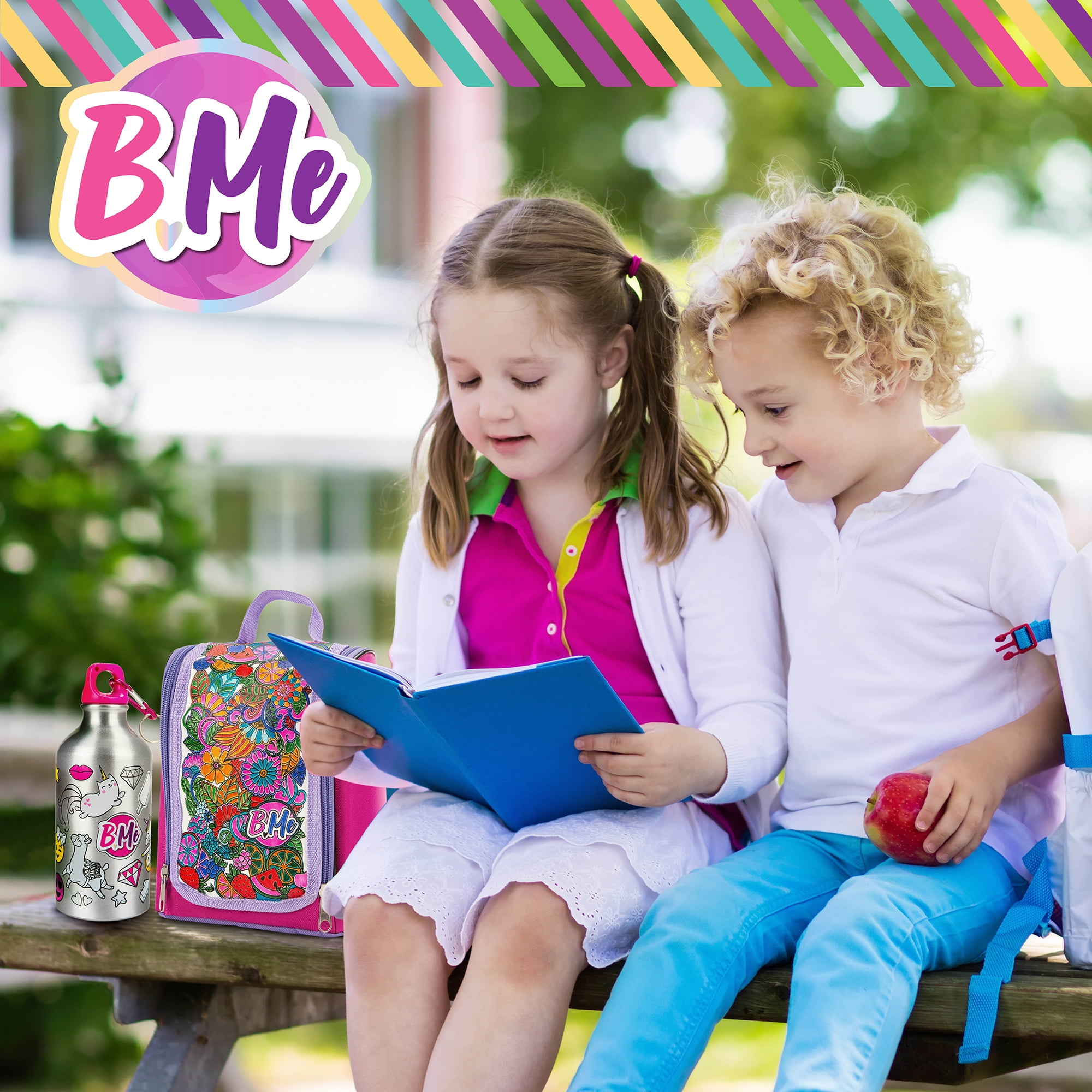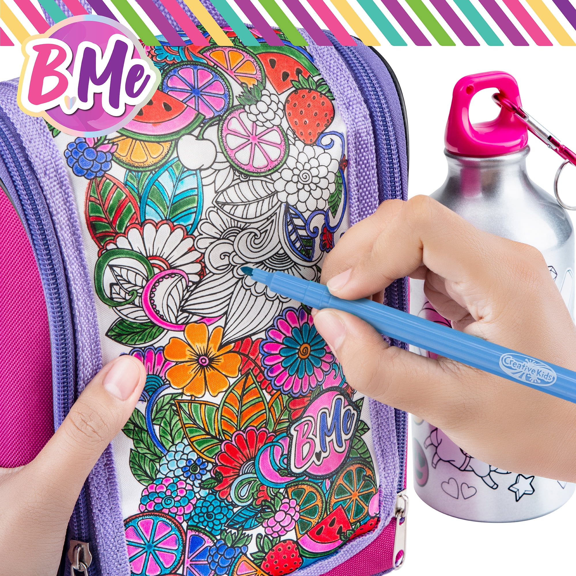 B Me DIY Snack Pack – Color-Your-Own Lunch Bag & Water Bottle Kit for Girls – BPA-Free Thermos, Insulated Lunch Box & 8 Magic Markers – Birthday Gift for Kids Age 6+