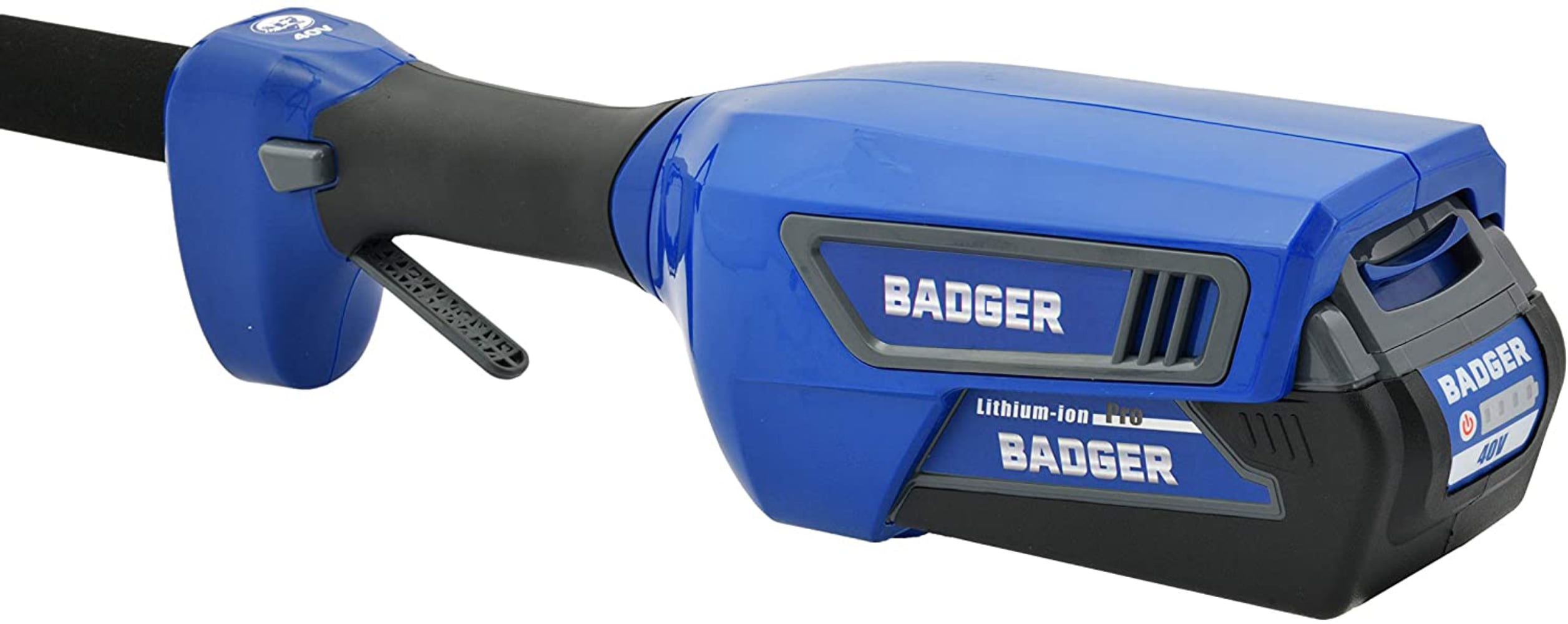 The Wild Badger 40-Volt max 2 tool combo kit includes our 40V string trimmer that easily converts to a powerful wheeled edger. This powerful, versatile tool has all the features you need to help maintain your yard. It’s powered by a 40V 2.5 Amp hour battery which provides long run time to complete multiple tasks. The adjustable 11 in. to 13 in. cutting path allows for a wide cutting swath. It is designed with an auto feed dual 0.065 in. line head. Our 40V blower is best for yards up to 1/2 acre. The blower delivers up to 400 CFM at 100MPH, allowing you to tackle the toughest jobs. The 40V 2.5 Amp hour battery provides up to 38-minute of run time. It’s lightweight at 7.2 lbs. and has comfort grips to help reduce fatigue. The Wild Badger 40V battery system powers more than 20 products, giving you a complete range of outdoor power tools to help you maintain a beautiful yard.