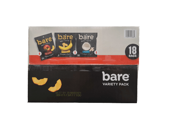 - Variety pack includes Apple Chips(8 Bags), Banana Chips(5 Bags) and Coconut Chips(5 Bags).
