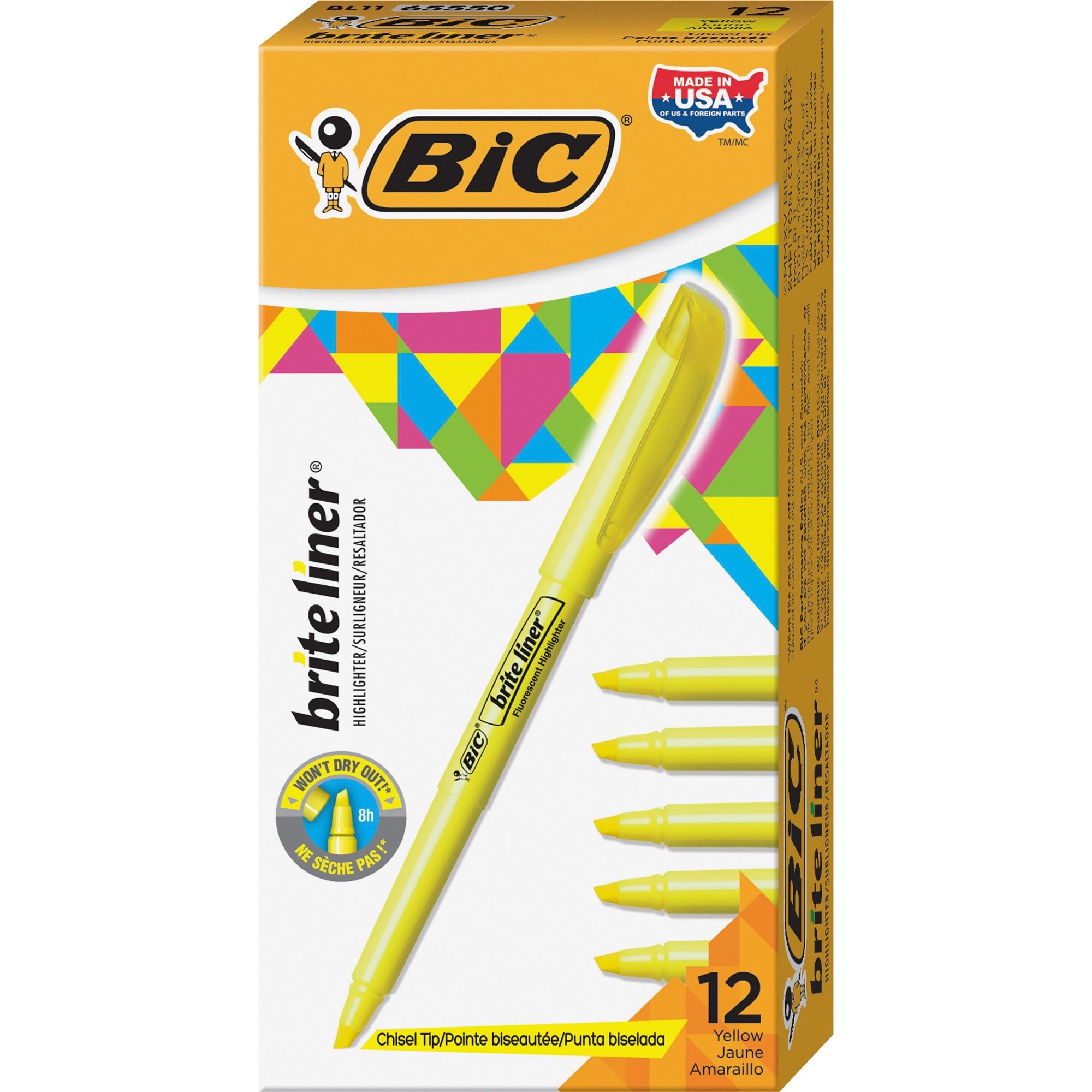 Special ink formula won’t dry up – even when the cap’s off Special ink formula resists drying.Whether you’re organizing your notes or underlining passages in a textbook, BIC Brite Liner Highlighters make highlighting fun and easy. These highlighters come in five highly visible, fluorescent colors, allowing you to easily color-code and emphasize information. Each highlighter has a versatile, firm chisel tip that allows you to seamlessly switch between broad highlighting and precise underlining