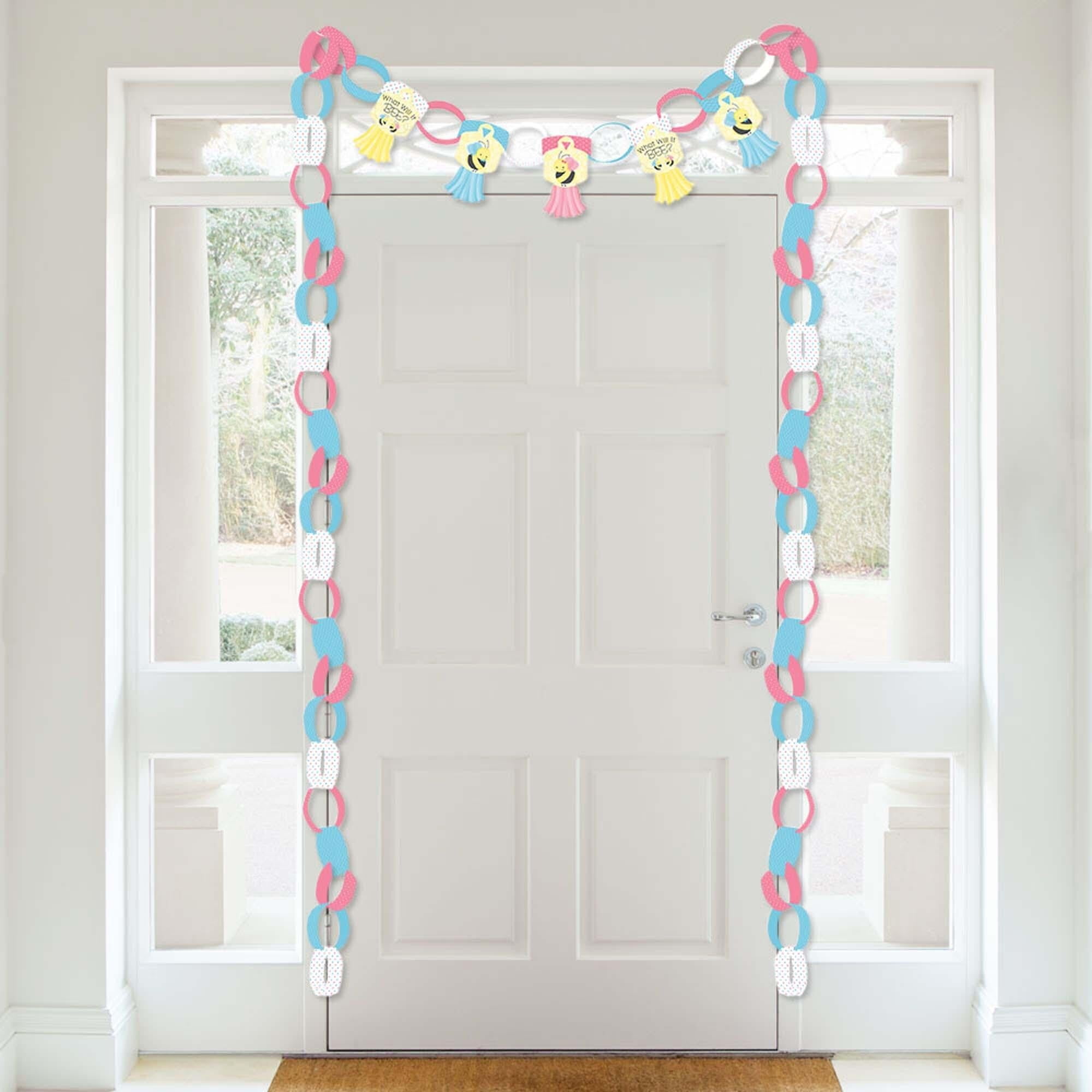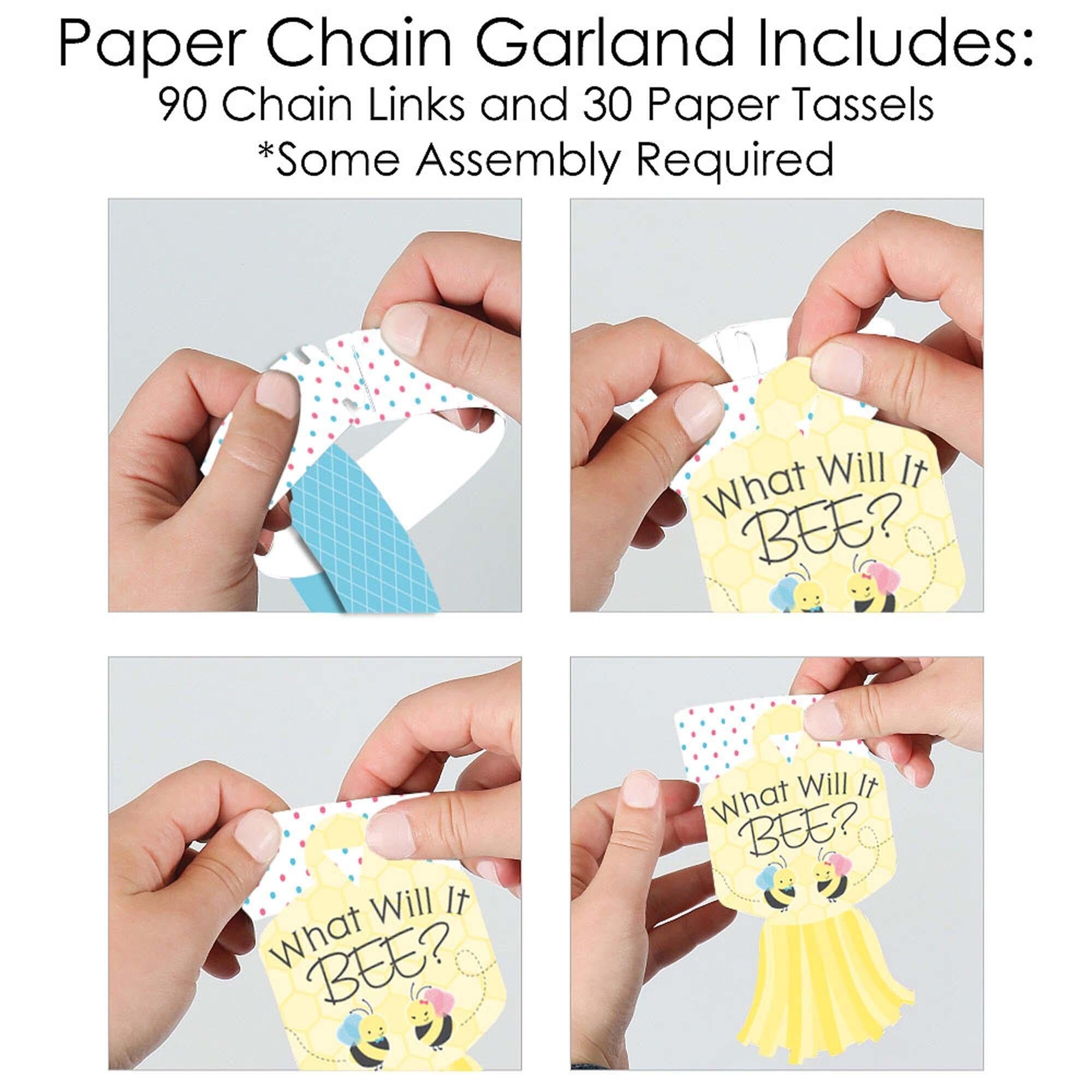 - PREMIUM PARTY DECORATION: Paper chain decorations are professionally printed and double-sided on sturdy cardstock paper, with a photo-like shine. They are then individually cut, inspected, and carefully packaged. What Will it Bee paper chains garland is a DIY kit that can be used in many ways. Get inspired with this fun do-it-yourself gender reveal kit!