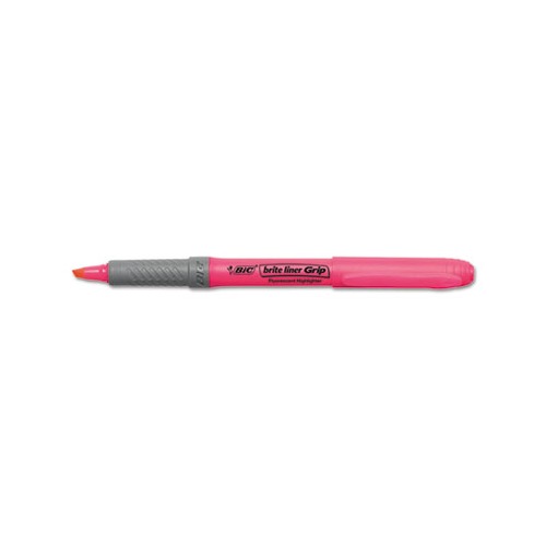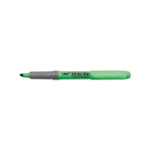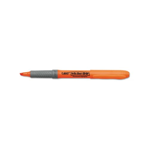BIC Brite Liner Grip Pocket Highlighters have super-bright fluorescent ink for attention-grabbing highlighting and a textured rubber grip for added comfort. Chisel tip is ideal for both broad highlighting and fine underlining. Won’t dry out if the cap is left off for eight hours. Colors: Assorted Color Family: Multicolor Assortment: Fluorescent Blue Fluorescent Green Fluorescent Orange Fluorescent Pink Fluorescent Yellow Tip Type: Chisel.