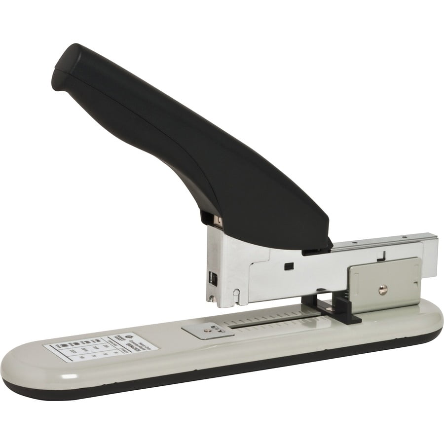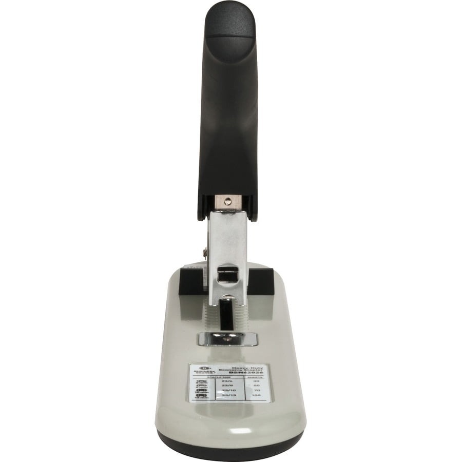 Economy Heavy-Duty Stapler fastens up to 100 sheets of paper. Features steel construction with nonskid rubber base. Throat depth measures 2". Stapler uses any heavy-duty staples with leg length up to 1/2".