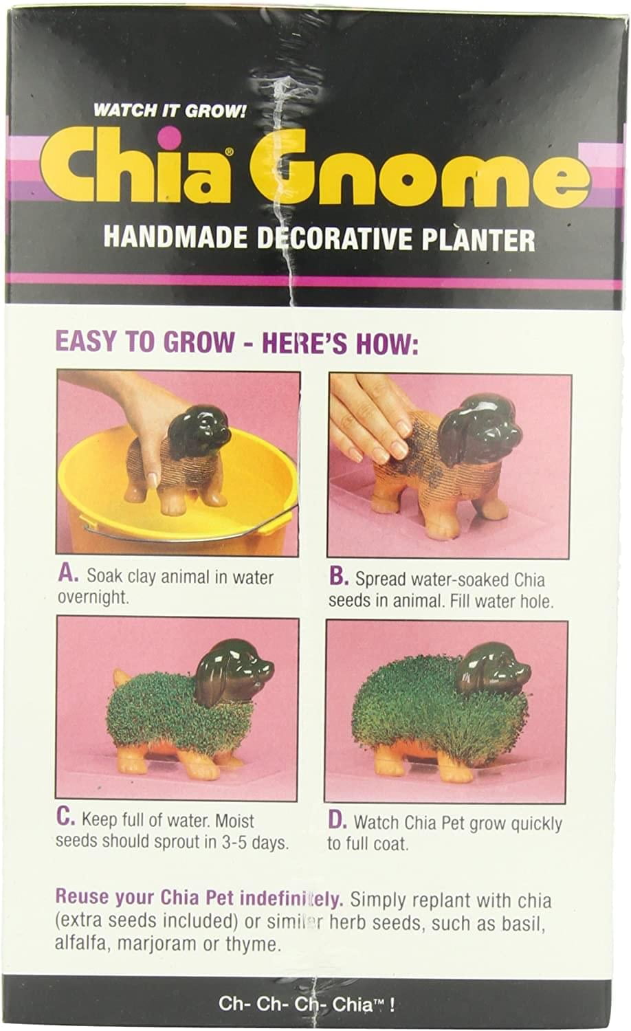 Bring a Gnome into your home with this fun Chia Pet decorative planter! Chia Pets are a fun and amusing gift for any age and any occasion. Easy to do? Fun to grow! You’ll see a full coat in about 1-2 weeks, and you can reuse your Chia indefinitely. Simply replant with Chia seeds!