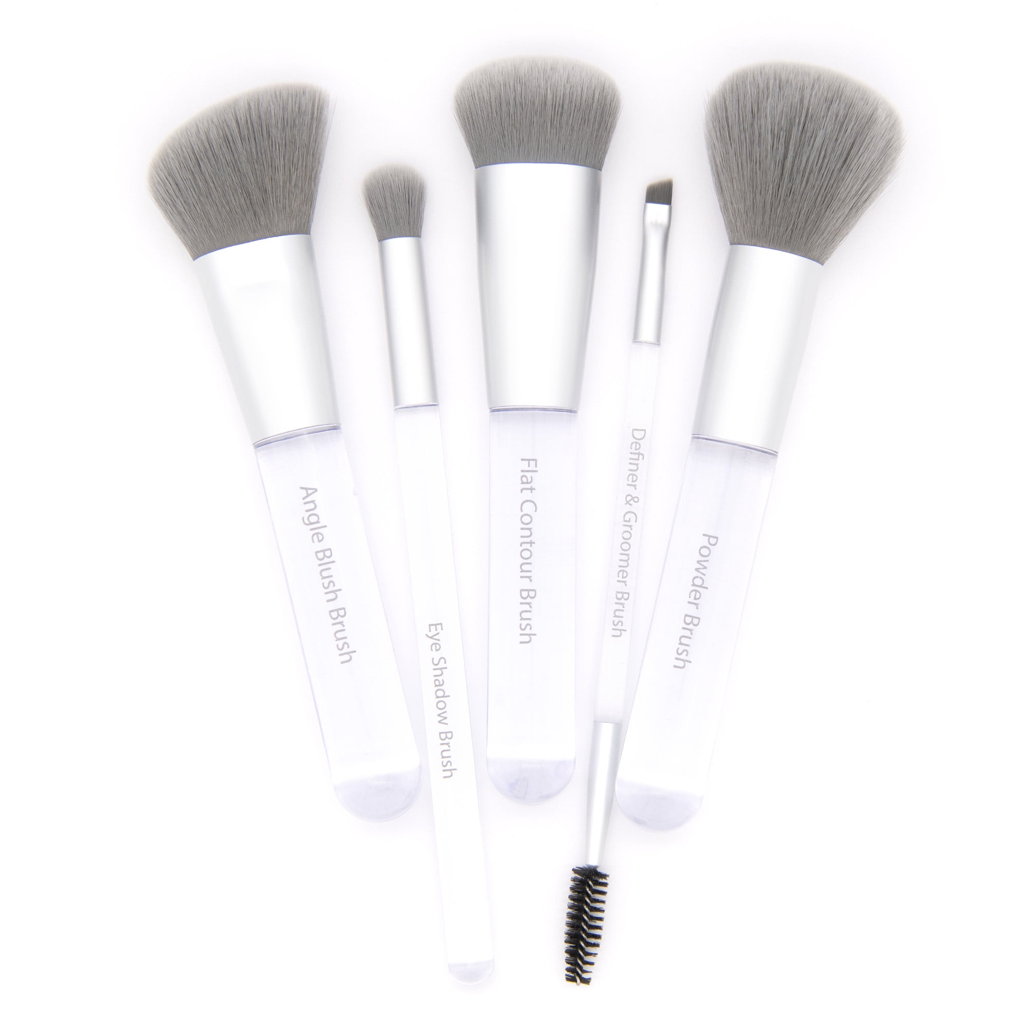 - This Set Includes – Powder, Flat Contour, Angled Blush, Eye Shadow, and Dual-Ended Definer and Groomer