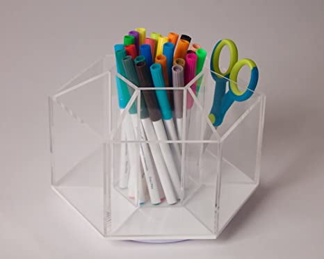 Are you sick of the clutter and mess that covers your desk? Make your desktop fully functional, organized and neat with theAcrylic Rotating Cup Holder Spinner fromDesignstyles. It?s the perfect office accessory for all of your stationery and supplies.Neatly store your pens, pencils, highlighters, scissors, paper clips, and other office supplies. A 360-degree rotating tray makes it easy to quickly grab exactly what you need. Free up drawer space when you utilize your countertops! When you free up surface space in your office or home things run smoothly and you can focus on the task at hand.PRODUCT FEATURES: Dimensions: 8" x 7? x 5? 7 Compartments 360 Degree Rotating Tray Made from High Quality Acrylic Saves Space Works in Office, Bedroom, Kitchen or Bathroom Color: Clear and WhiteMULTIPURPOSE AND MULTIFUNCTIONALThe organization doesn?t have to stop at your office. This stationary station is great for any room in your home. Use it in the kitchen to store utensils, magnets, chip clips and other loose ends. It functions as the perfect storage for your makeup brushes and cosmetics on your vanity or in your bathroom. A durable construction makes it perfect for storing loose ends and other home essentials.ABOUT USAt Designstyles we believe organization and style should be effortless and affordable. So we work to provide a wide range of supplies and organizers that make life run smoothly. With everything from magazine racks to storage baskets, you can depend on our carefully crafted products to keep your home or office neat and clean. We?ve got everything you need to make things run smoothly in your home or office. Choose style and choose Designstyles!