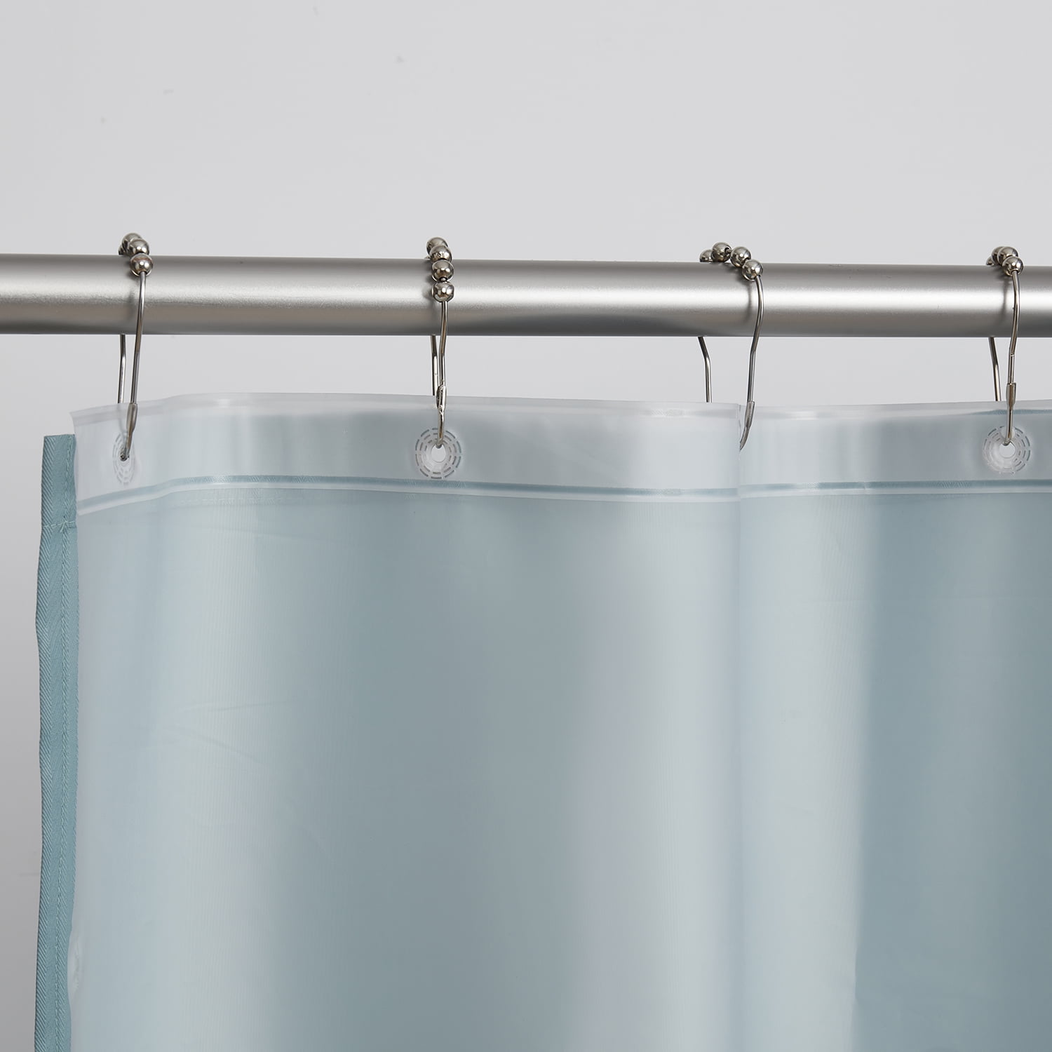 - INCLUDES: Set includes 1 shower curtain and 1 liner (both measuring 70 x 72 inches) and 12 metal hooks