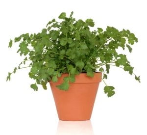 The Santo Cilantro plant, which is a member of the carrot family, is an annual herb with an unmistakable strong sharp scent and the taste associated with authentic Mexican cuisine. Santo is a slow-bolting selection grown for its leaves. Unlike other herbs you can use both the leaves (cilantro) and dried seeds (coriander) of this versatile plant for a variety of culinary treats from Mexican to Asian. Cilantro is one of the most fragrant ingredients in salsa and other Mexican dishes such as burritos, tacos and chili. The branching Santo Cilantro plant grows slow and steady ( slow bolting cilantro ) producing more leaves per plant, and gives the gardener more time to harvest leaves after other Cilantro plants have already gone to seed. The leaf flavor is similar to a strong parsley taste with citrus undertones. After the 2- to 4-inch pale cream flower umbels have formed, allow them to go to seed. Cut and dry the heads, harvesting the seeds and using them as the spice, Coriander. Coriander can be used whole or ground in curries, Oriental dishes, and savory baked goods. Place plants 12-24 inches apart in a full sun location. Cilantro is not too fussy about soil; it just requires a normal well-draining soil with adequate watering. Plant will be mature in 60 days (from seeding), and continue to produce until the frost. Pinching off the flowers before they form seeds will assure a longer cilantro harvest..Clovers Garden Santo Cilantro Plant – Slow Bolt – Two (2) Live Plants – Not Seeds –Each 4" to 7" Tall- In 3.5 Inch Pots