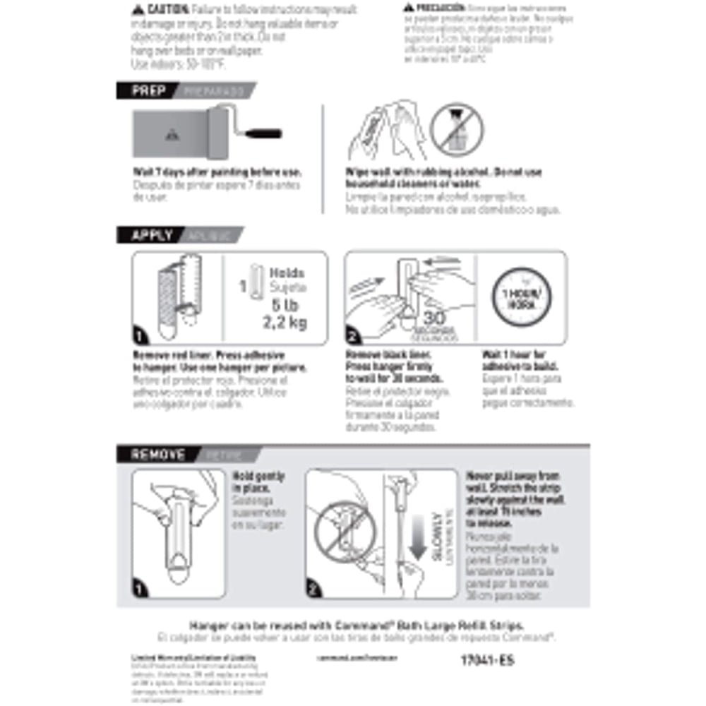 Command Picture Hangers, Hooks and Clips make decorating quick and easy. Command Wire-Backed Picture Hanging Hooks are perfect for wire-suspended frames. These large hangers are easy to install, hold strongly, and remove cleanly without any damage. Great for hanging picture frames, wall art, mirrors, canvas, posters, wall clocks, letters and more. Each pack contains 3 hangers, 6 strips and holds up to 5 pounds.