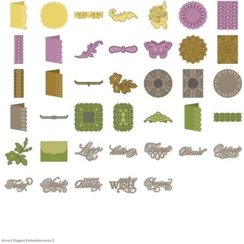 Everyone loves a sequel, and this is the newest Anna Griffin Elegant Embellishments cartridge! With more flowers, ribbons, pretty icons, and intricate embellishments to create. Just like you did with the original, you can dress up cards, scrapbook pages, gift wrapping, and beautiful decor with designer style. These decidedly feminine designs include complementary borders, doilies, and more. After adorning projects with intricate embellishments, everything else seems bare! For use with all Circuit cutting machines.
